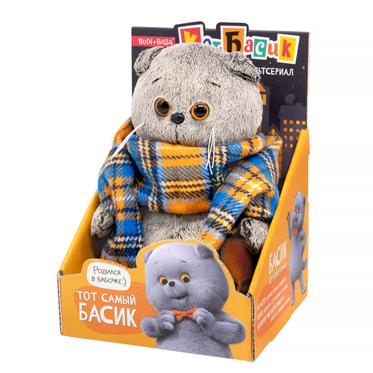 Ksm19-002 Игрушка Кот Басик в шарфе в клеточку, "Мультсериал"