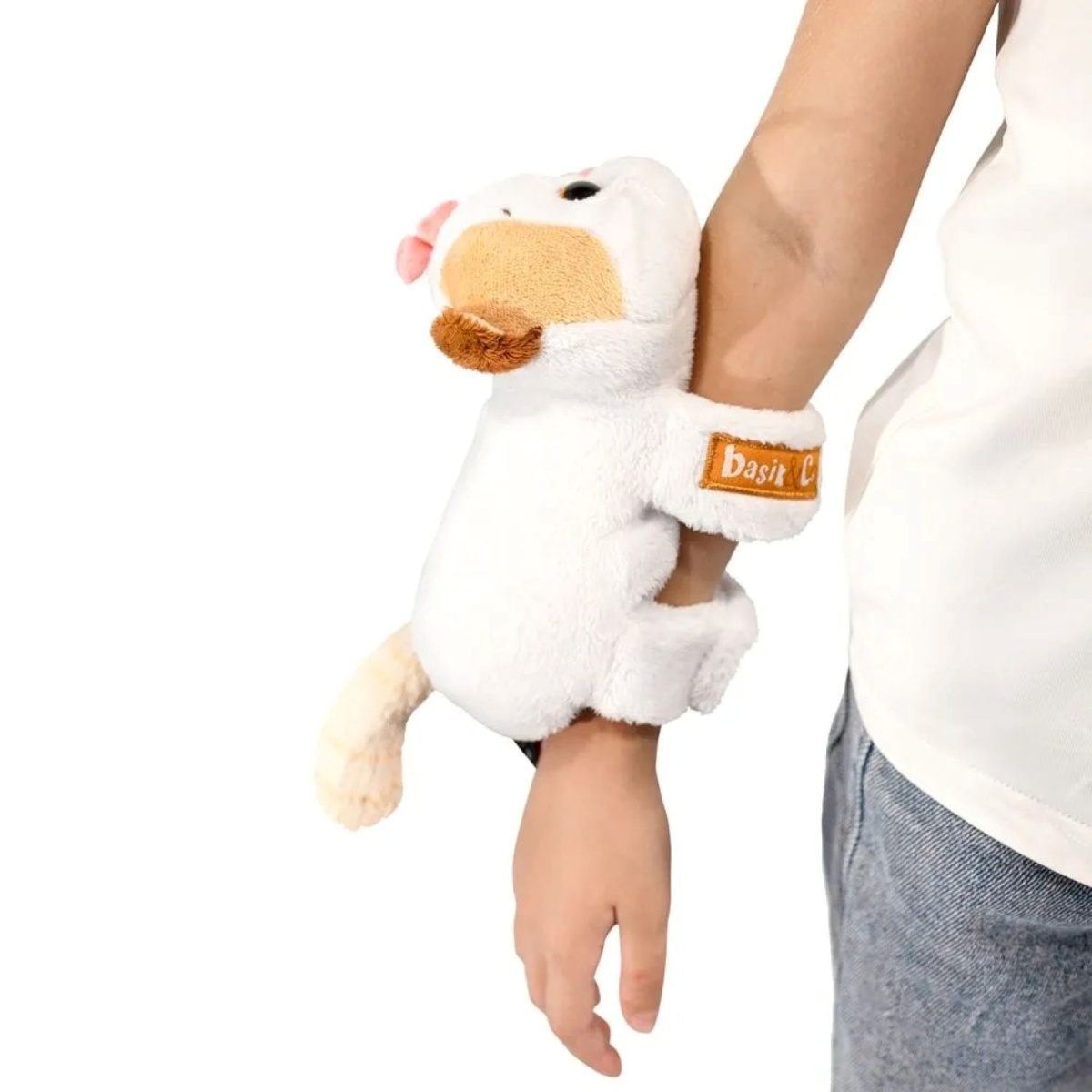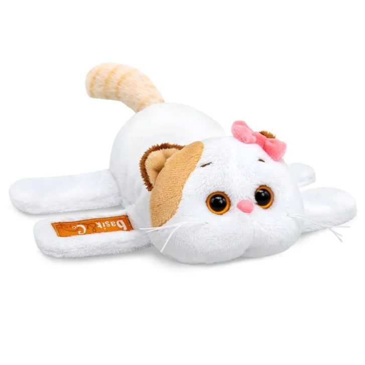 Стильный слэп (slap) браслет кошечка Ли-Ли на двух гибких пластинах закрепах. На Ли-Ли розовый бантик из софта. Слэп браслет в развернутом виде выглядит как линейка или закладка для книги, но при легком ударе о запястье, благодаря специальной пластине внутри, превращается в браслет, мягко закручиваясь вокруг руки. Универсальный размер. Кошечка Ли-Ли с бантиком на 2 браслетах представлена на фирменной подложке.