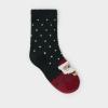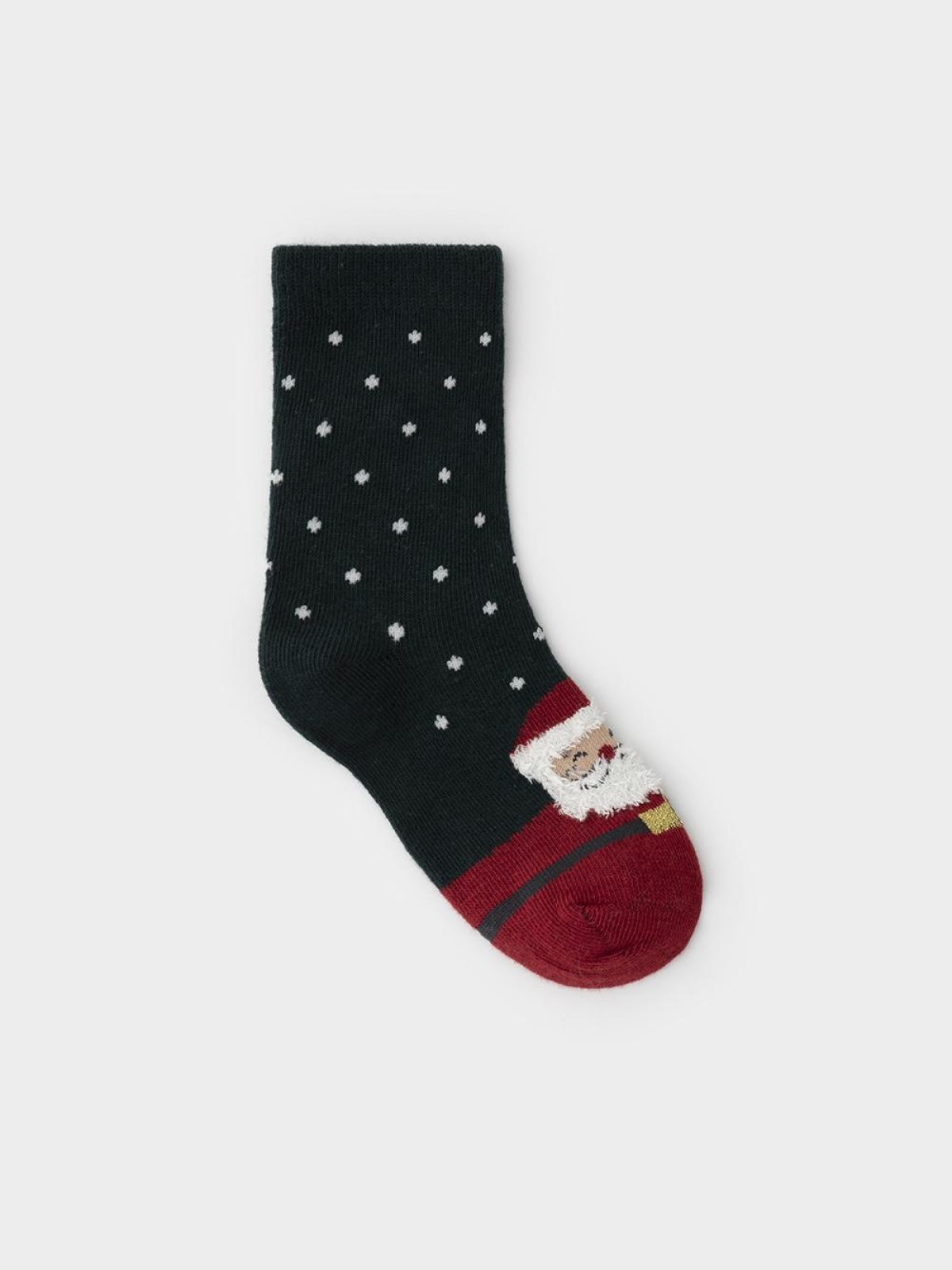Носки с формованной пяткой и эластичной резинкой по краю. Украшены рисунком. Отлично подойдут для создания праздничных образов или как дополнение к подарку на Новый год и Рождество. Изделие сохраняет форму и стойкий цвет после многочисленных стирок.
