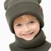 Комплект детский: шапка и снуд из полушерсти. Тёплая шапка с отворотом, украшена нашивкой из искусственной кожи. Снуд без оборотов вокруг шеи. Изделие сохраняет форму и стойкий цвет после многочисленных стирок.