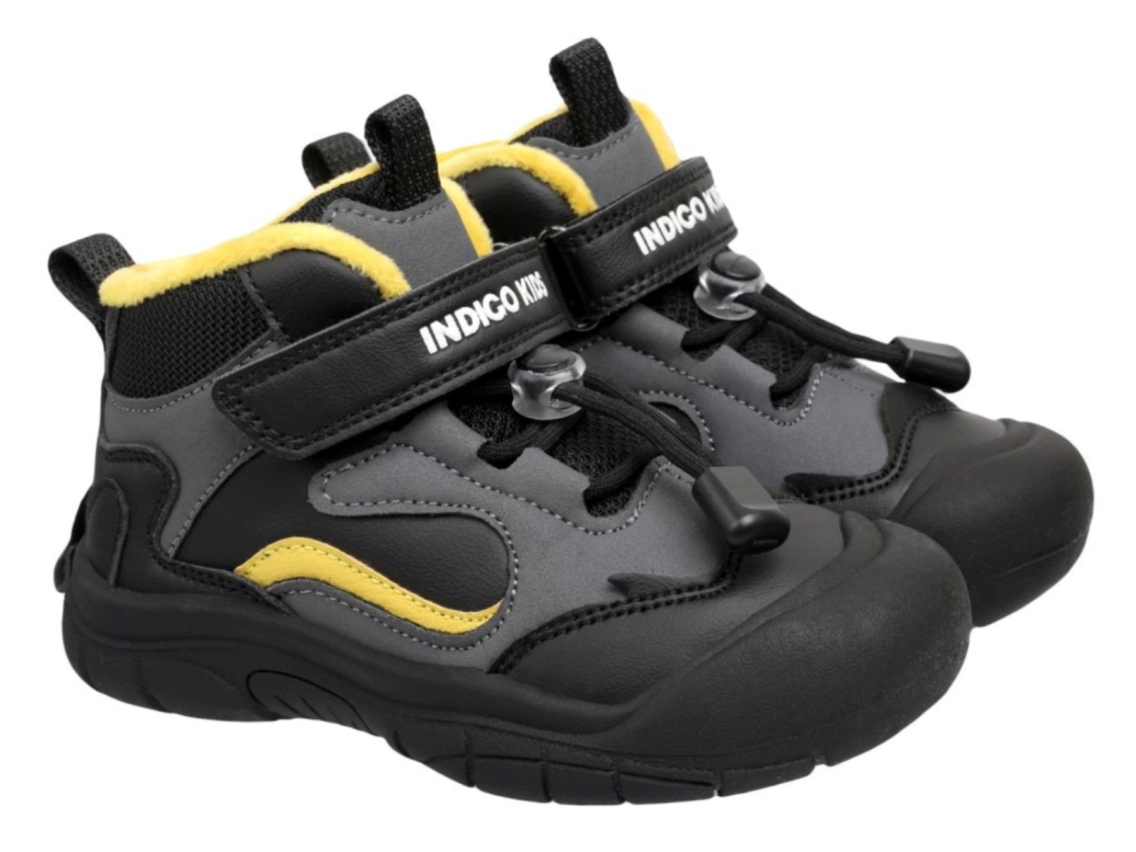 Ботинки INDIGO KIDS для мальчиков идеально подойдут для весенне-осеннего сезона. Ботинки изготовлены из высококачественной экокожи с элементами отделки из текстиля, за счет используемых материалов эта модель обладает отличными эксплуатационными характеристиками: приятные на ощупь, с хорошей воздухопроницаемостью, что особенно важно для активных детей. В качестве подкладки использована мягкая хлопковая байка, а съёмная анатомическая стелька обеспечивает дополнительный комфорт и гигиеничность обуви, поддерживая детский свод стопы в правильном положении. Одной из главных особенностей модели является прочная подошва из материала ТЭП с высокой защитой носочной части, она устойчива к значительным нагрузкам, сохраняет свойства при низких температурах и обладает противоскользящими свойствами. Для фиксации на ноге ботинки оснащены регулируемым шнурком и одним ремнем, что обеспечивает легкую и надежную посадку. Удобная колодка гарантирует комфорт даже при длительных прогулках, позволяя вашему ребенку активно отдыхать б