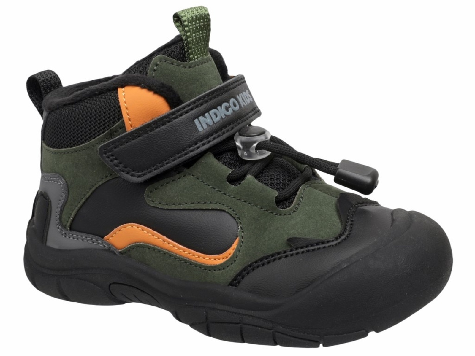 Ботинки INDIGO KIDS для мальчиков идеально подойдут для весенне-осеннего сезона. Ботинки изготовлены из высококачественной экокожи с элементами отделки из текстиля, за счет используемых материалов эта модель обладает отличными эксплуатационными характеристиками: приятные на ощупь, с хорошей воздухопроницаемостью, что особенно важно для активных детей. В качестве подкладки использована мягкая хлопковая байка, а съёмная анатомическая стелька обеспечивает дополнительный комфорт и гигиеничность обуви, поддерживая детский свод стопы в правильном положении. Одной из главных особенностей модели является прочная подошва из материала ТЭП с высокой защитой носочной части, она устойчива к значительным нагрузкам, сохраняет свойства при низких температурах и обладает противоскользящими свойствами. Для фиксации на ноге ботинки оснащены регулируемым шнурком и одним ремнем, что обеспечивает легкую и надежную посадку. Удобная колодка гарантирует комфорт даже при длительных прогулках, позволяя вашему ребенку активно отдыхать б