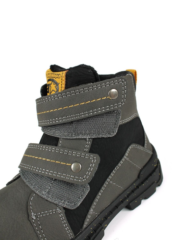 Великолепные ботинки от бренда Antilopa созданы специально для современных мальчишек. Модель выполнена из искусственного нубука серого цвета и удобно фиксируется на липучки. Подкладка и стелька из утепленного баечного текстиля с добавлением натурального хлопка подарят детским ножкам тепло и уют в прохладное время года.