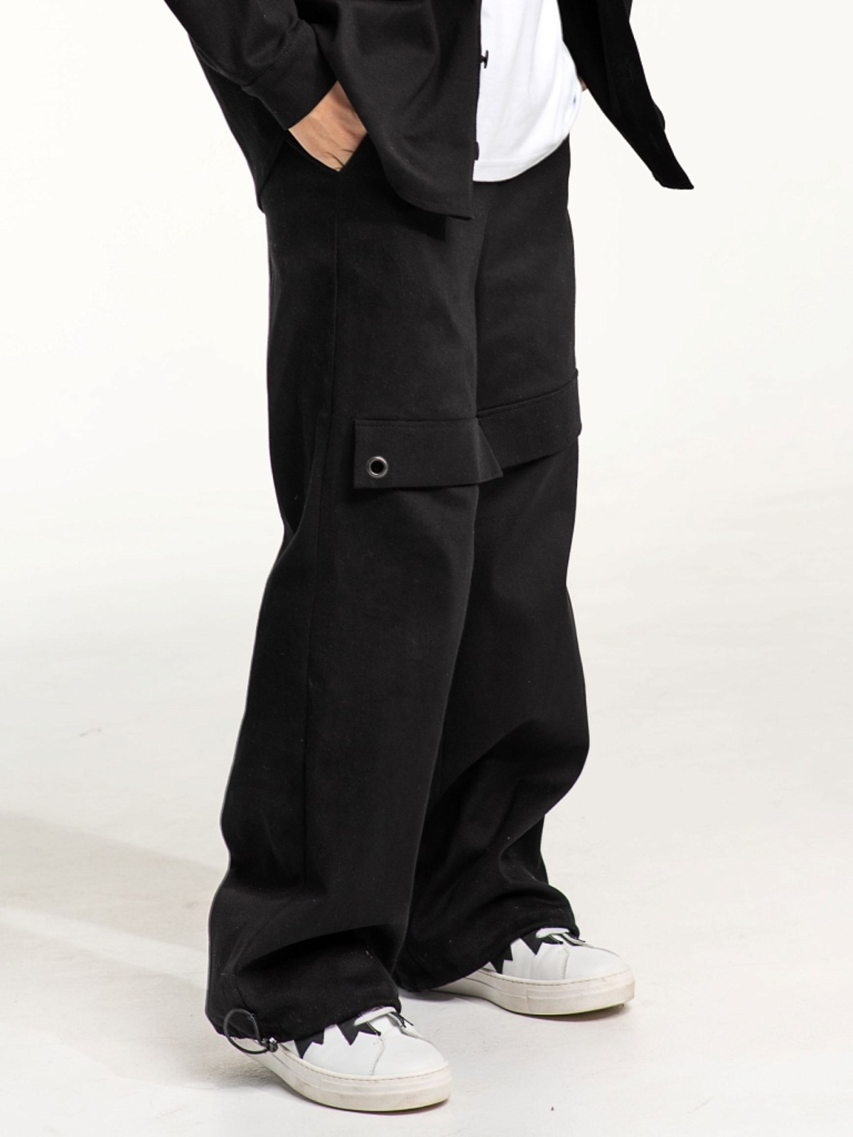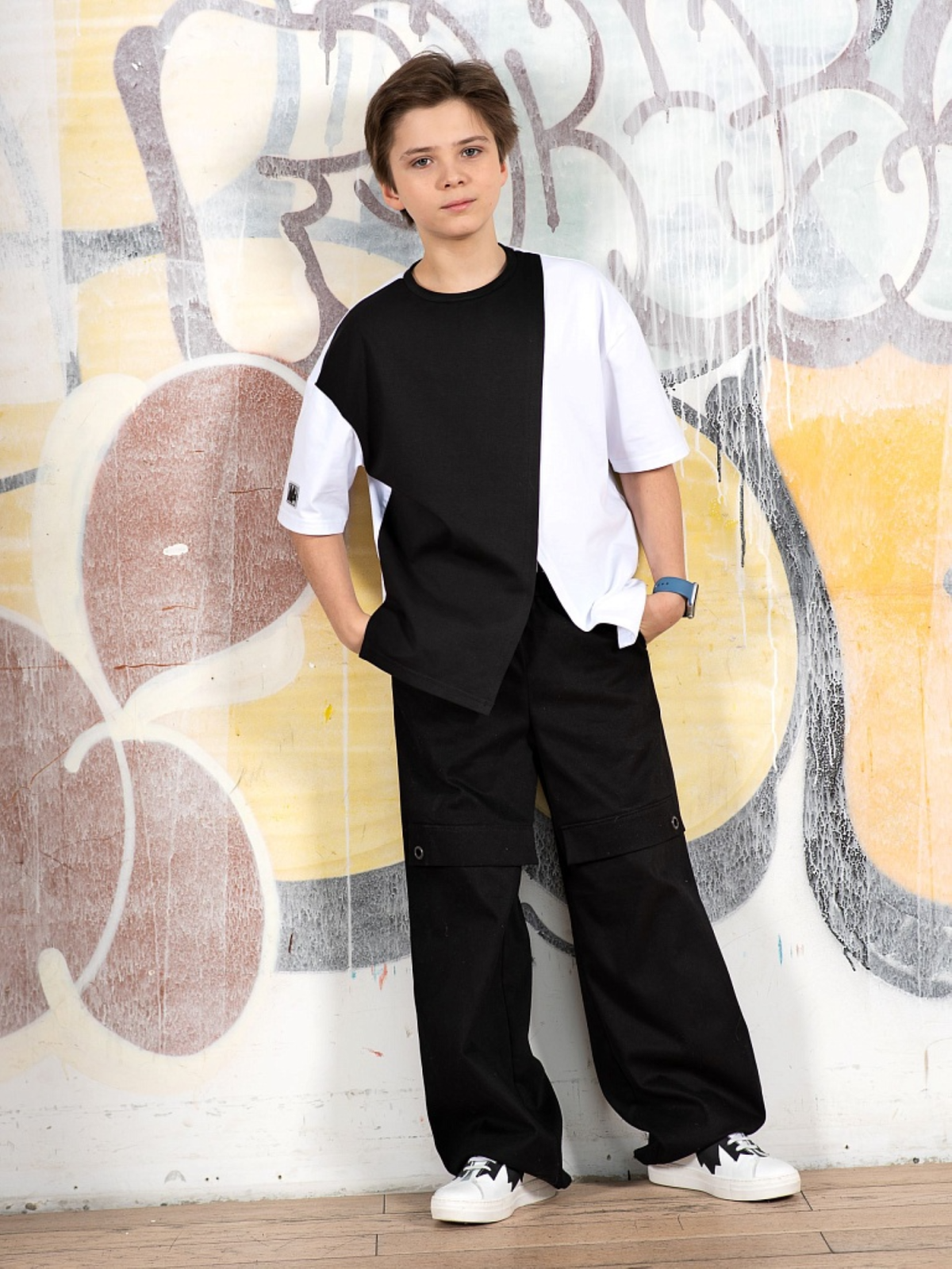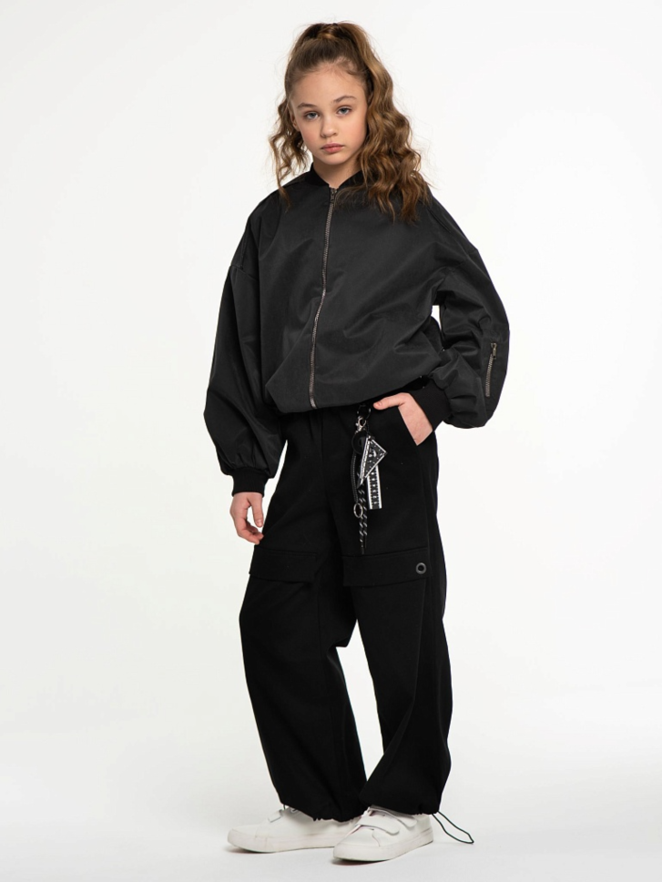Повседневные широкие брюки парашюты для мальчиков и девочек. Модель выполнена из плотного хлопкового денима, стилизована декоративными клапанами с металлическими люверсами. Состав ткани: 80% хлопок, 20% полиэфирное волокно. Пояс на резинке, карманы в боковых швах, низ брюк на утяжке со стопорами.