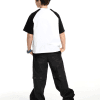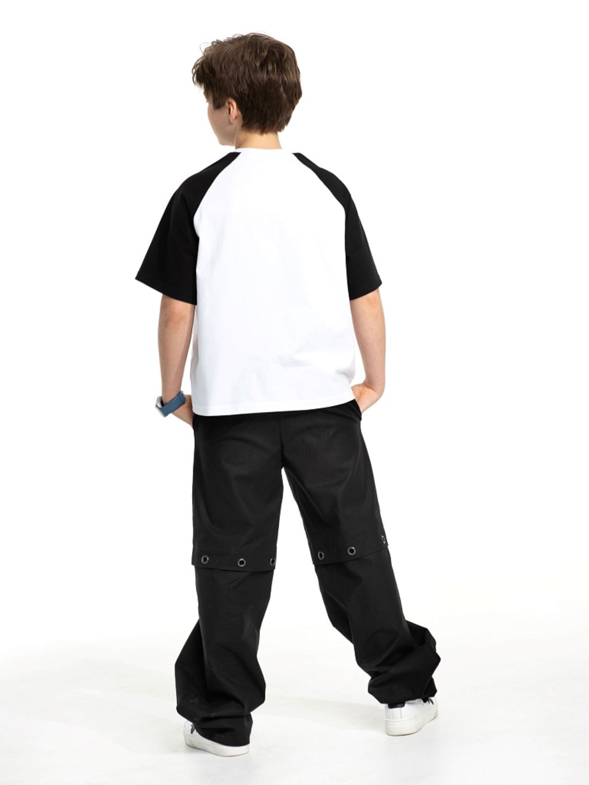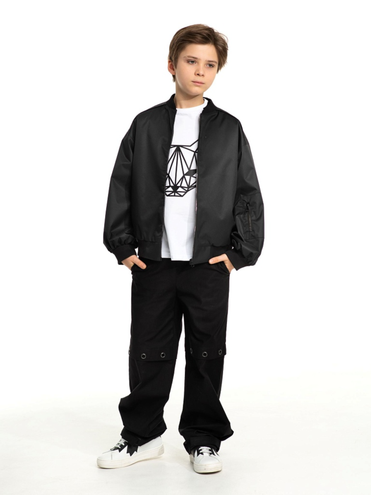 Повседневные брюки парашюты для мальчиков и девочек. Модель выполнена из плотного хлопкового денима, стилизована кулиской с металлическими люверсами выше колена. Состав ткани: 80% хлопок, 20% полиэфирное волокно. Пояс на резинке, карманы с наклонным входом, низ брюк на утяжке со стопорами.