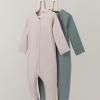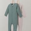 Комбинезоны для новорождённых из мягкого эластичного трикотажа, произведённого из натурального хлопка. В упаковке 2 штуки. Застёгиваются спереди на кнопки. В размере 56 на рукавах предусмотрены антицарапки, швы выполнены наружу. Все трикотажные полотна производятся в соответствии с нормами Швейцарского сертификата ЭкоТекс.