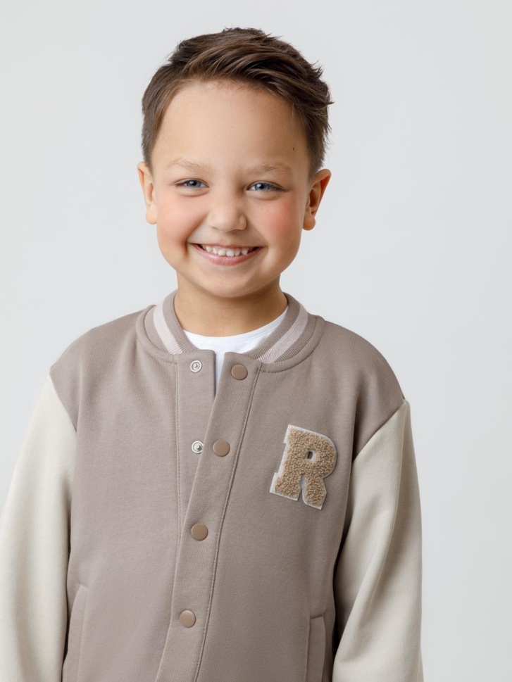 Бомбер для мальчика с контрастными рукавами из мягкого трикотажа. Воротник, манжеты и пояс вязаные. Спереди два кармана. Изделие сохраняет цвет и форму после многократных стирок. Все трикотажные полотна производятся в соответствии с нормами швейцарского сертификата ЭкоТекс.