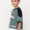 Футболка для мальчика из высококачественного трикотажного полотна. Оригинальный принт выполнен из стойких текстильных гипоаллергенных красителей. Для удобства в размерах 92 и 98 на спинке есть застежка на кнопки.
