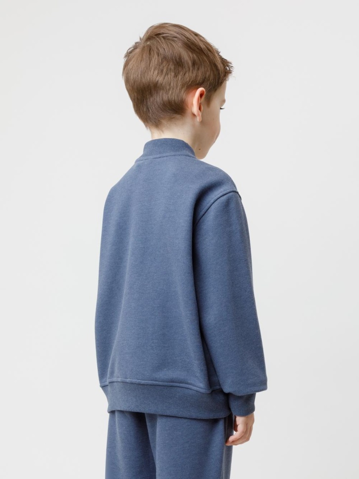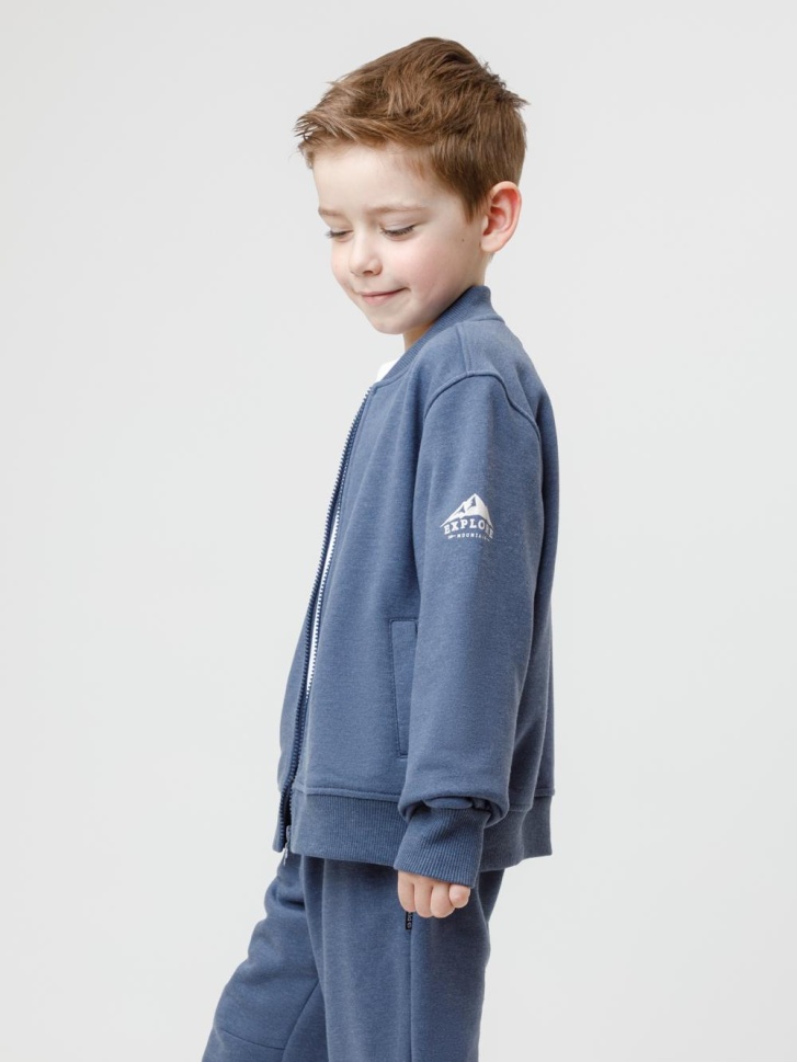 Бомбер для мальчика на молнии. Изготовлен из мягкого петельчатого футера трёхнитки. Воротник, манжеты и пояс выполнены из эластичного полотна. По бокам два кармана. Изделие сохраняет цвет и форму после многократных стирок. Все трикотажные полотна производятся в соответствии с нормами швейцарского сертификата ЭкоТекс.