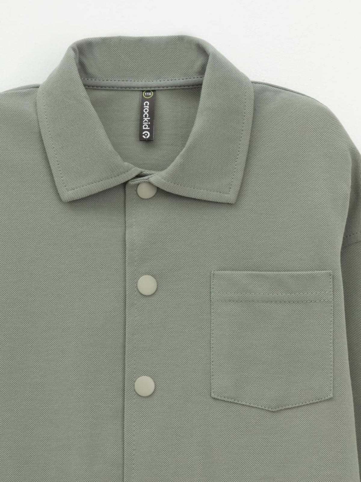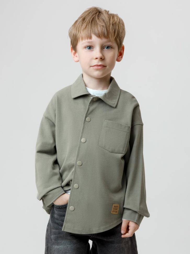 Свободная трикотажная рубашка для мальчика из мягкого трикотажа пике. Застёгивается на кнопки. Модель с закругленным низом и спущенным плечом. Все трикотажные полотна производятся в соответствии с нормами швейцарского сертификата ЭкоТекс.