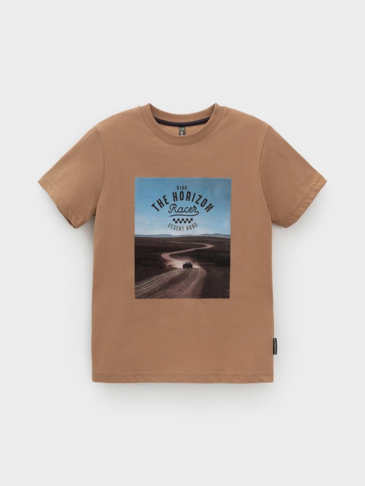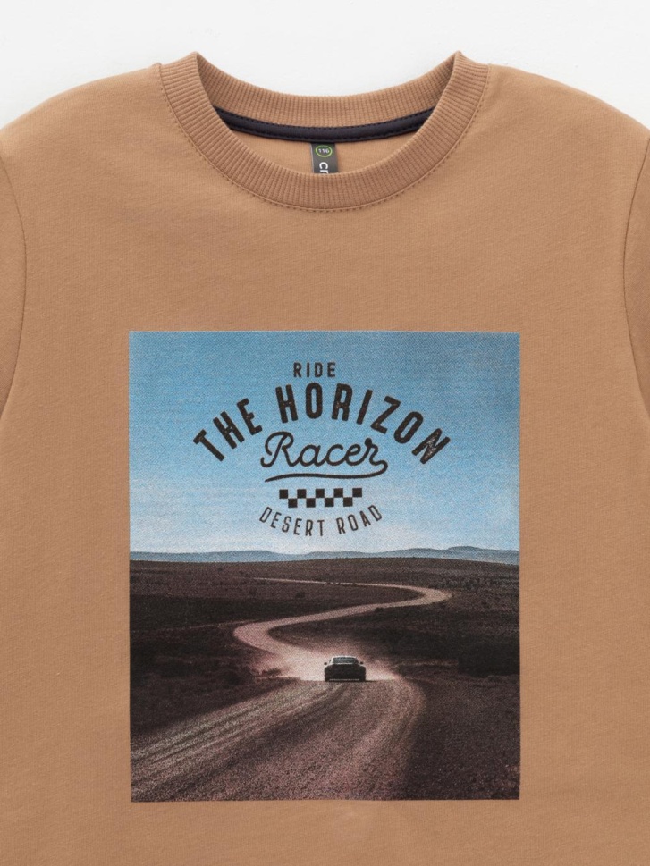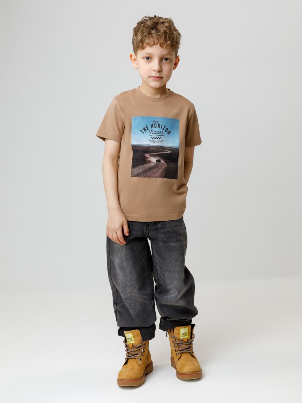 Футболка для мальчика из гладкого трикотажа, произведённого из высококачественного натурального хлопка. Для удобства одевания имеется застёжка на кнопки в размерах 92 и 98. Оригинальный принт выполнен из стойких текстильных гипоаллергенных красителей. Изделие сохраняет цвет и форму после многократных стирок. Все трикотажные полотна производятся в соответствии с нормами швейцарского сертификата ЭкоТекс.