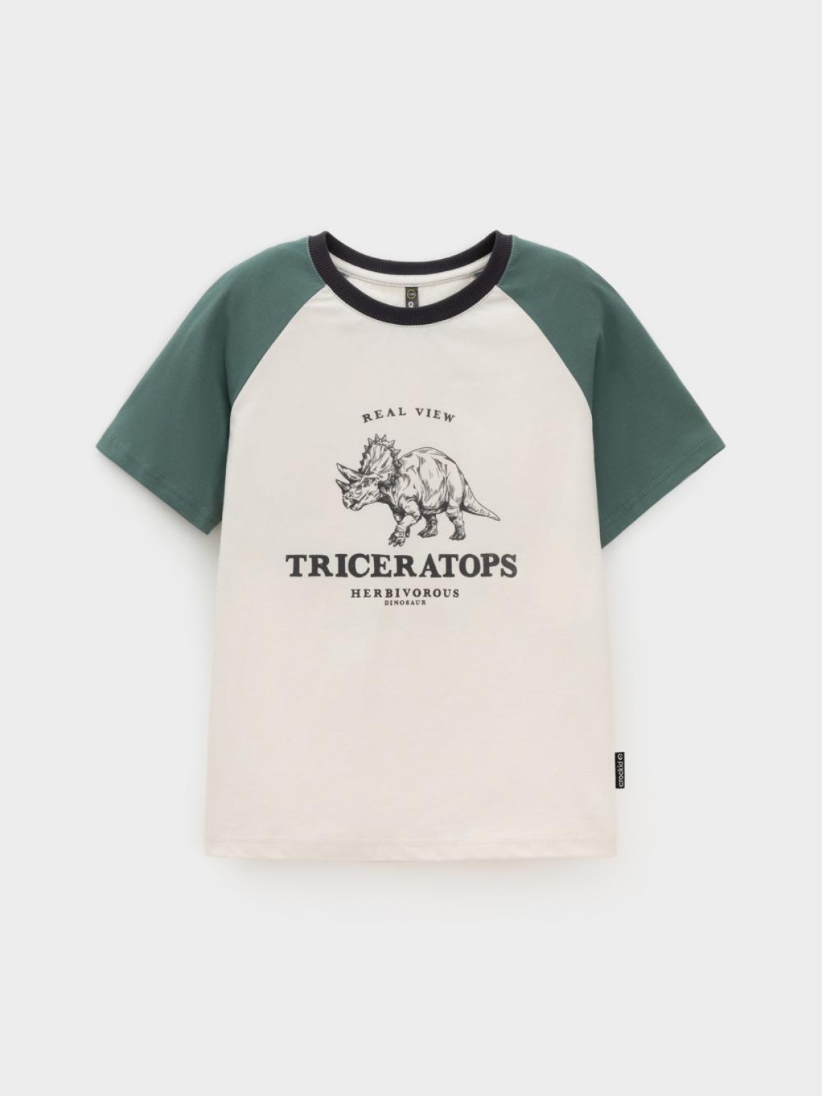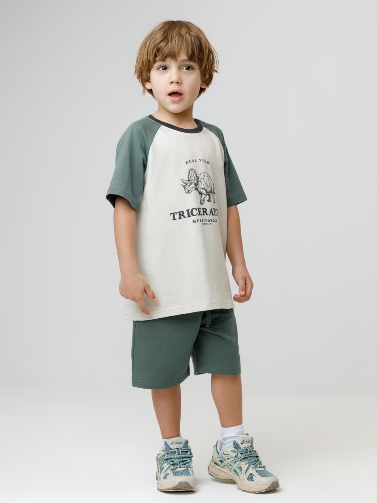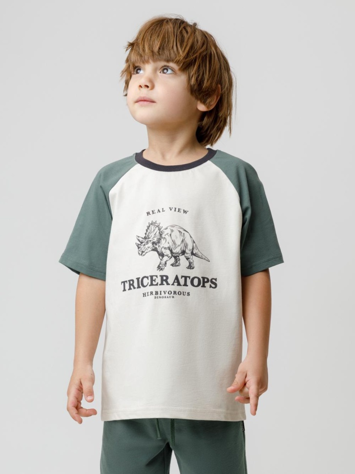 Футболка для мальчика из гладкого трикотажа, произведённого из высококачественного натурального хлопка. Для удобства одевания имеется застёжка на кнопки в размера 92 и 98. Оригинальный принт выполнен из стойких текстильных гипоаллергенных красителей. Изделие сохраняет цвет и форму после многократных стирок. Все трикотажные полотна производятся в соответствии с нормами швейцарского сертификата ЭкоТекс.