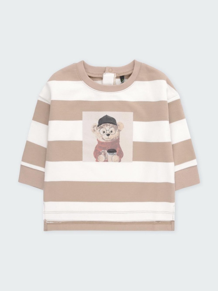 Свитшот для мальчика из высококачественного петельчатого футера. Обтачка горловины и манжеты выполнены из эластичного полотна. Для удобства одевания имеется застёжка на кнопки. Оригинальный принт нанесён с помощью стойких текстильных гипоаллергенных красителей.