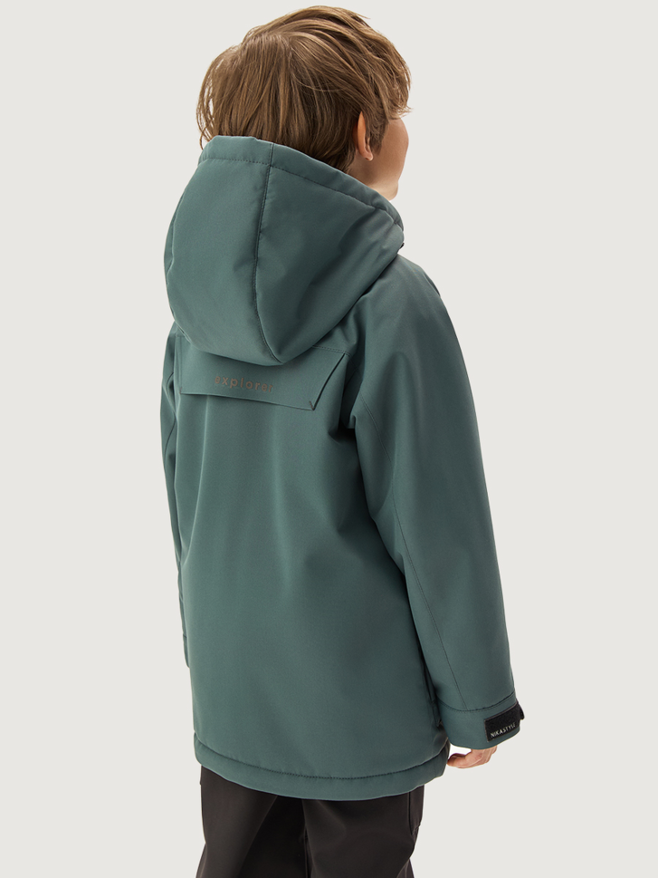 Куртка ЭКСПЕДИЦИЯ из мембранной ткани 5000/5000 с водо- грязеотталкивающей -технологией TEFLON. Мембранная ткань - это непродуваемый и водонепроницаемый материал, который надежно защищает от ветра и влаги. Благодаря дышащим свойствам мембраны ребенку будет комфортно в любую погоду, и он не вспотеет. Ткань обработана снаружи экологически чистым протектором TEFLON для защиты от воды и грязи. Мембрана в сочетании с утеплителем нового поколения FIBERlite сохраняет тепло во время прогулок, позволяя телу дышать. Флисовая подкладка отводит влагу и имеет хорошие теплоизоляционные свойства. Функционал: - центральная застежка на молнии, - ветрозащитная планка, - нижние накладные карманы с двойным входом на кнопке и липучках, - капюшон с кулисой для регулировки объема, - трикотажные манжеты. В рукавах гладкая подкладка для удобства продевания рук. Мы все продумали до мелочей, поэтому ширина низа рукава регулируется патой на липах, кулиса по низу куртки для регулировки объёма. Модель дополнительно оснащена внутренними бр