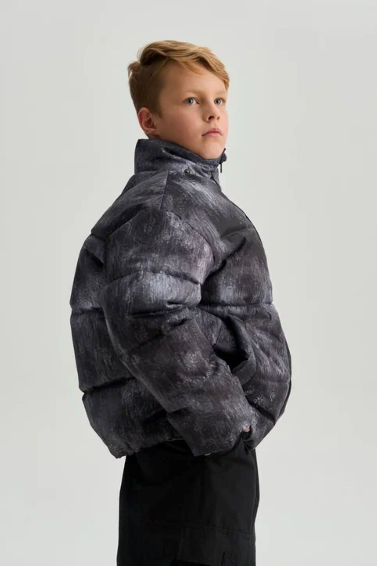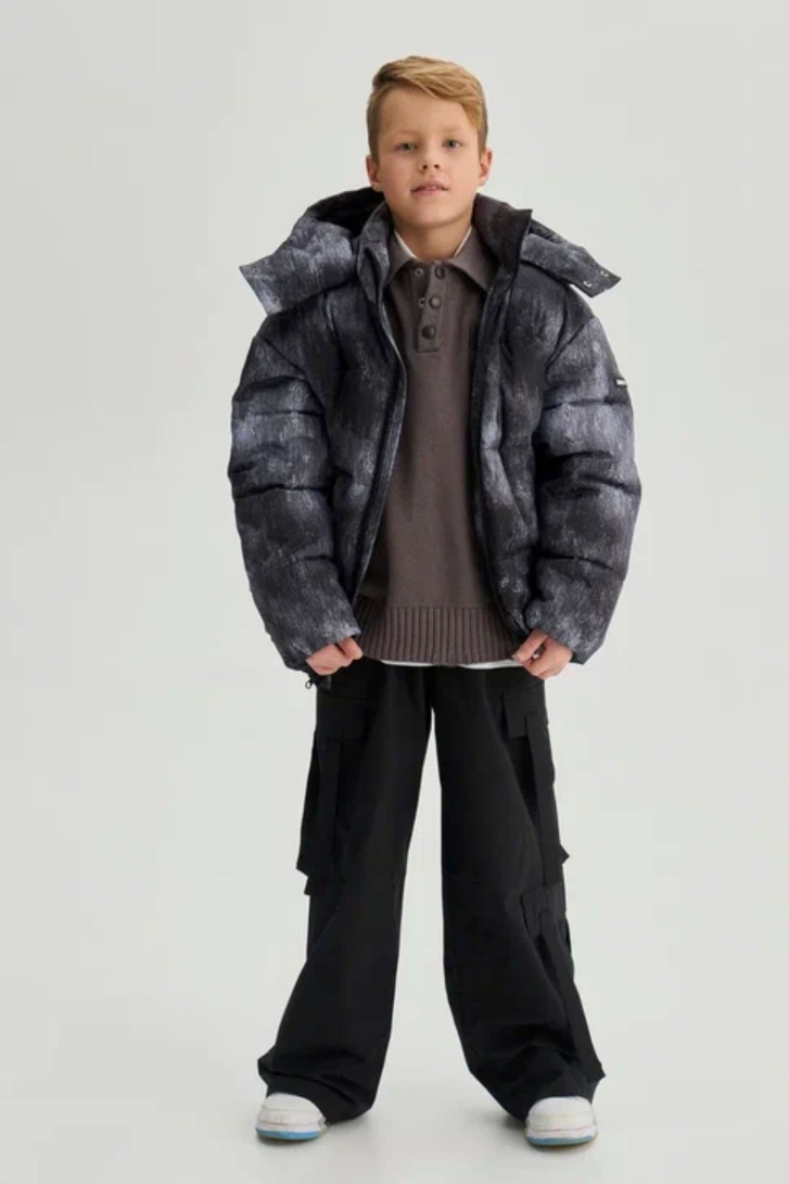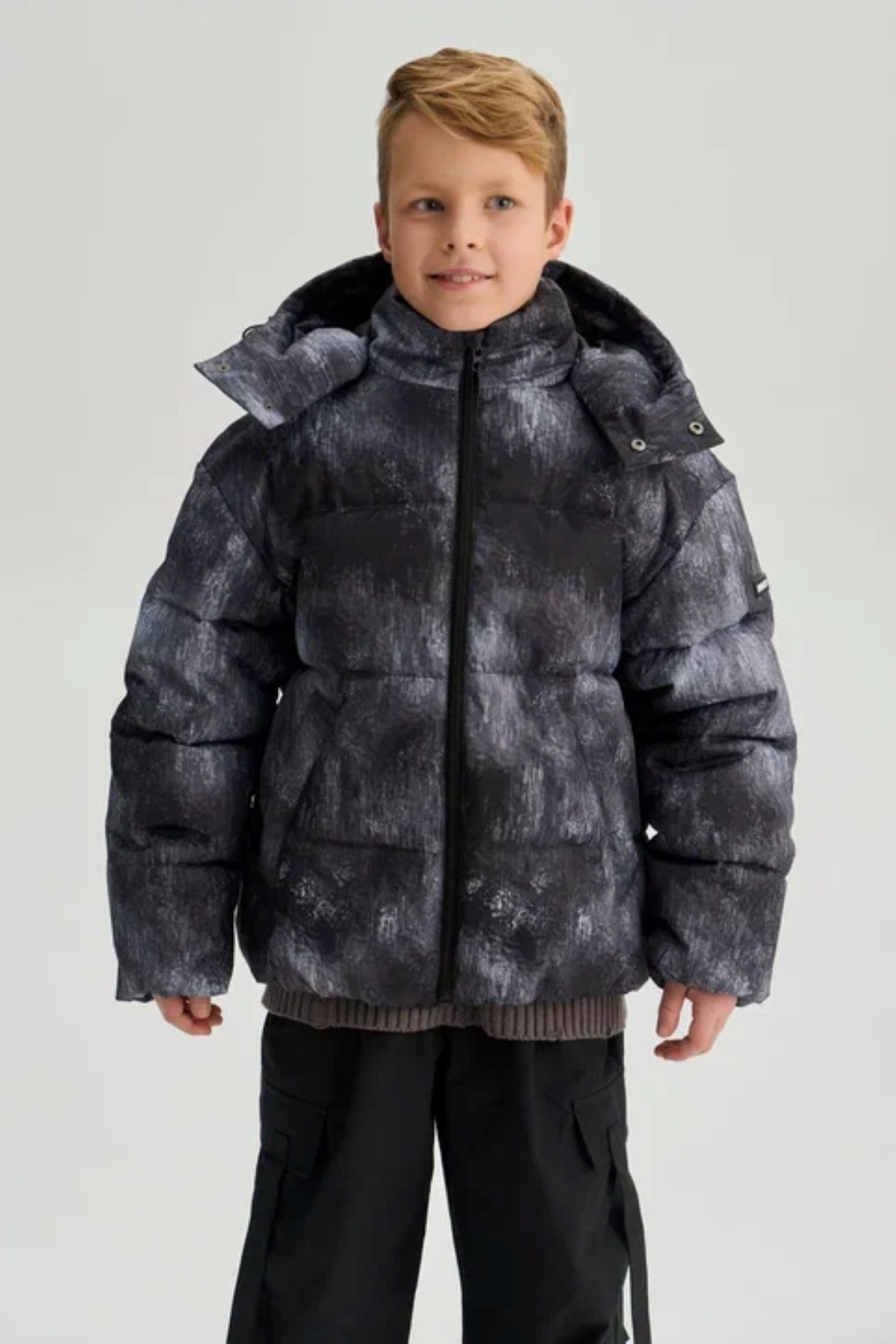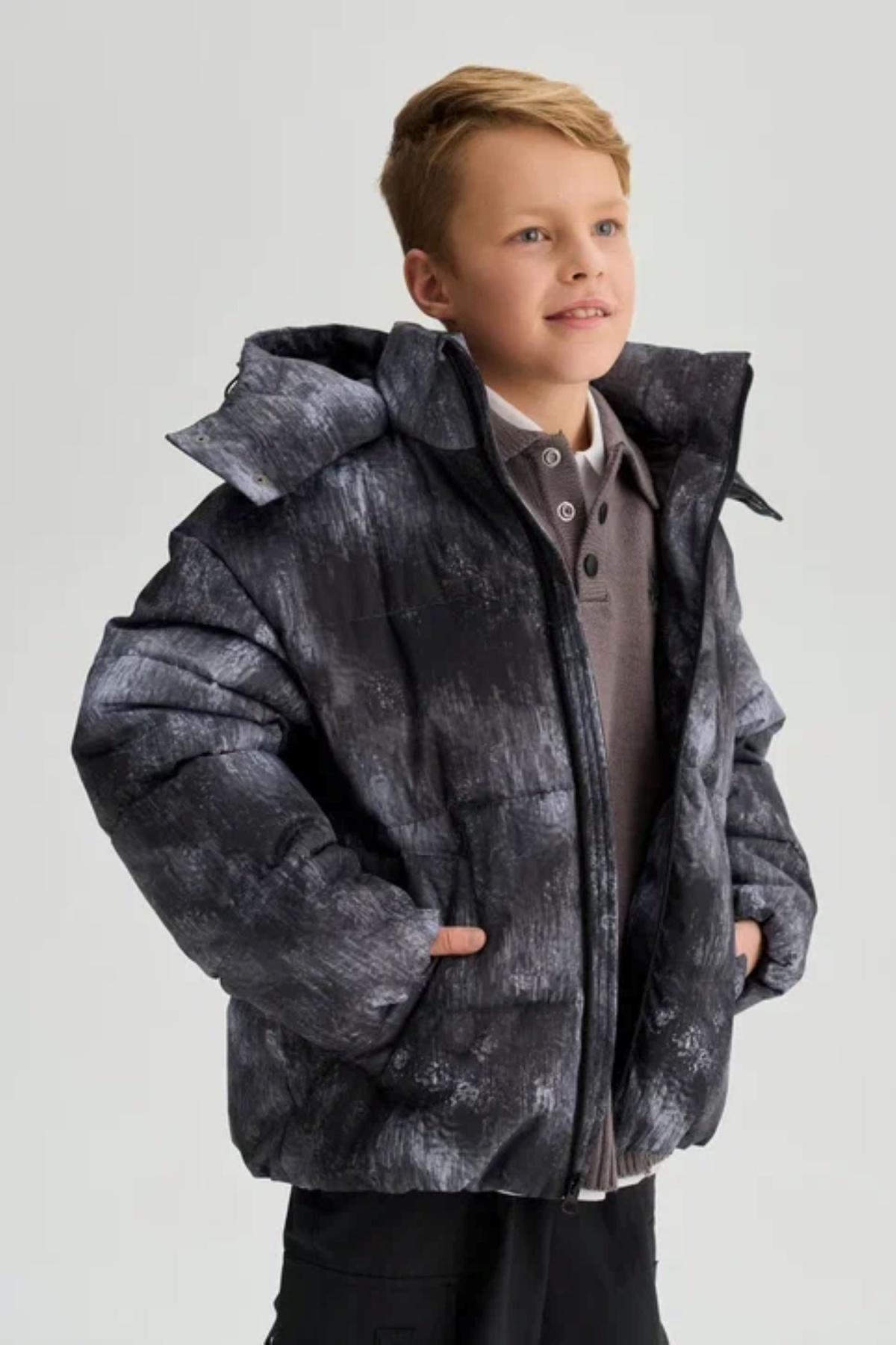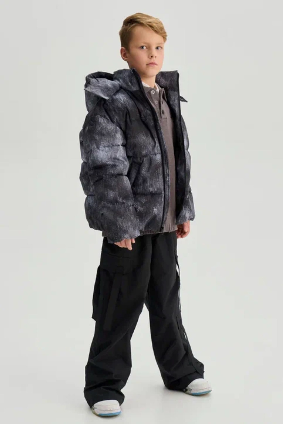 SS2026201 ПУХОВИК ПИКЕР ПРИНТ МУАР ЧЁРНЫЙ