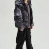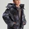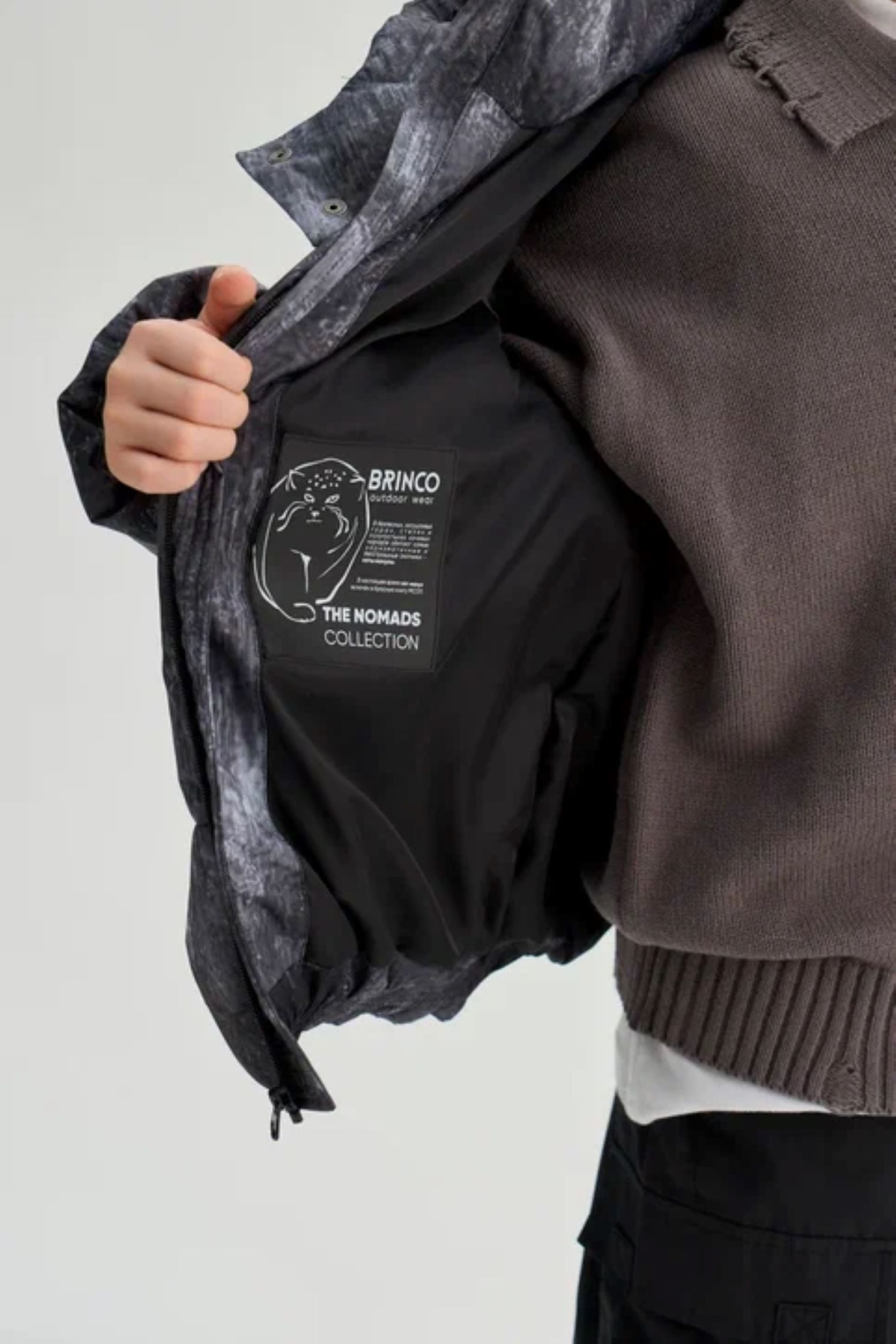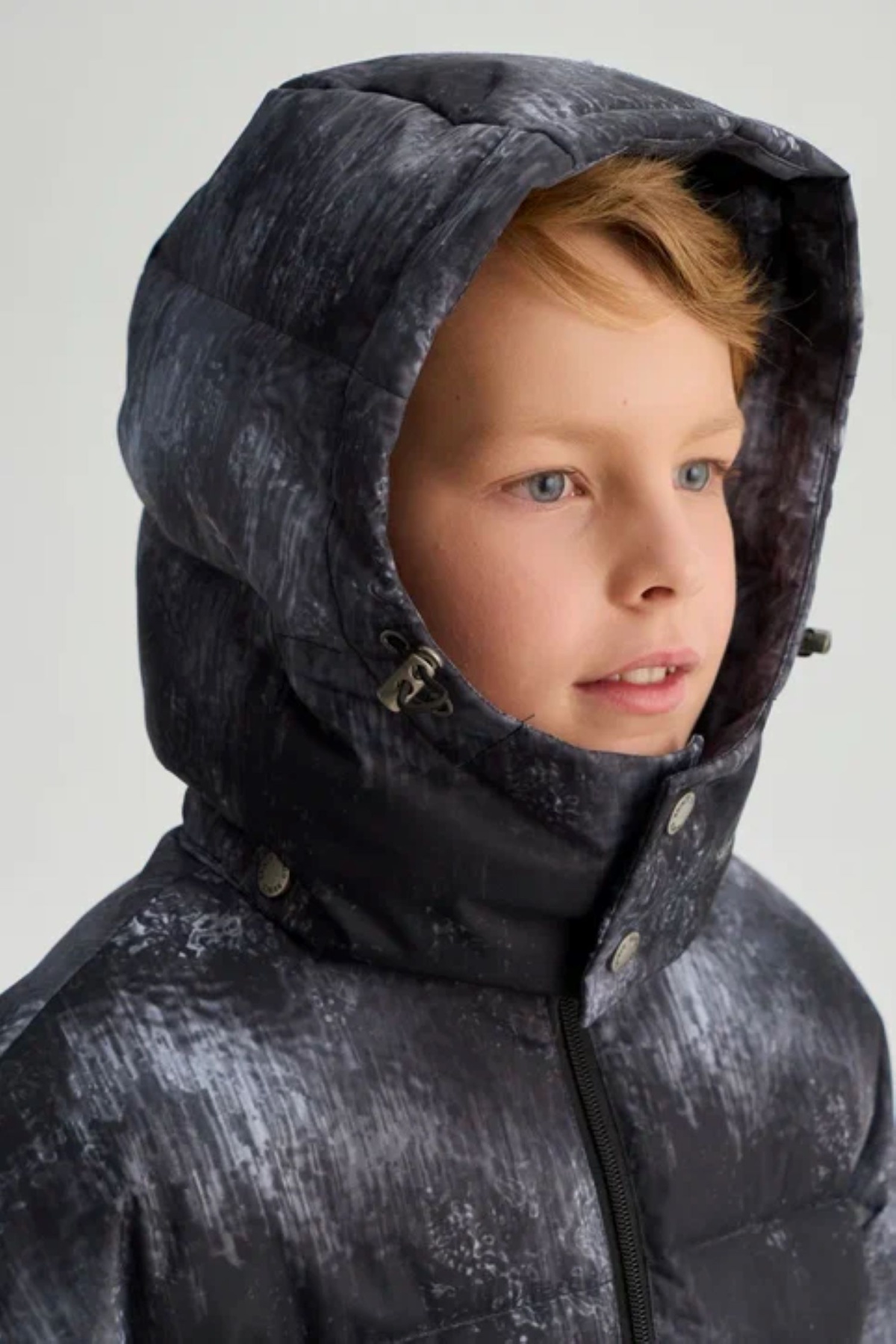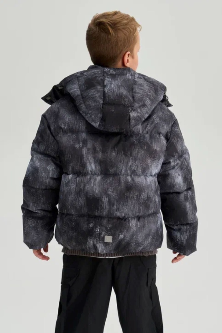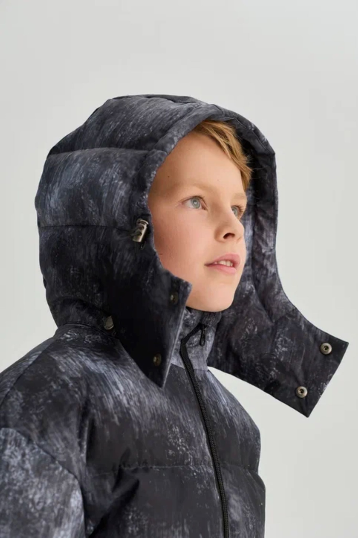 SS2026201 ПУХОВИК ПИКЕР ПРИНТ МУАР ЧЁРНЫЙ