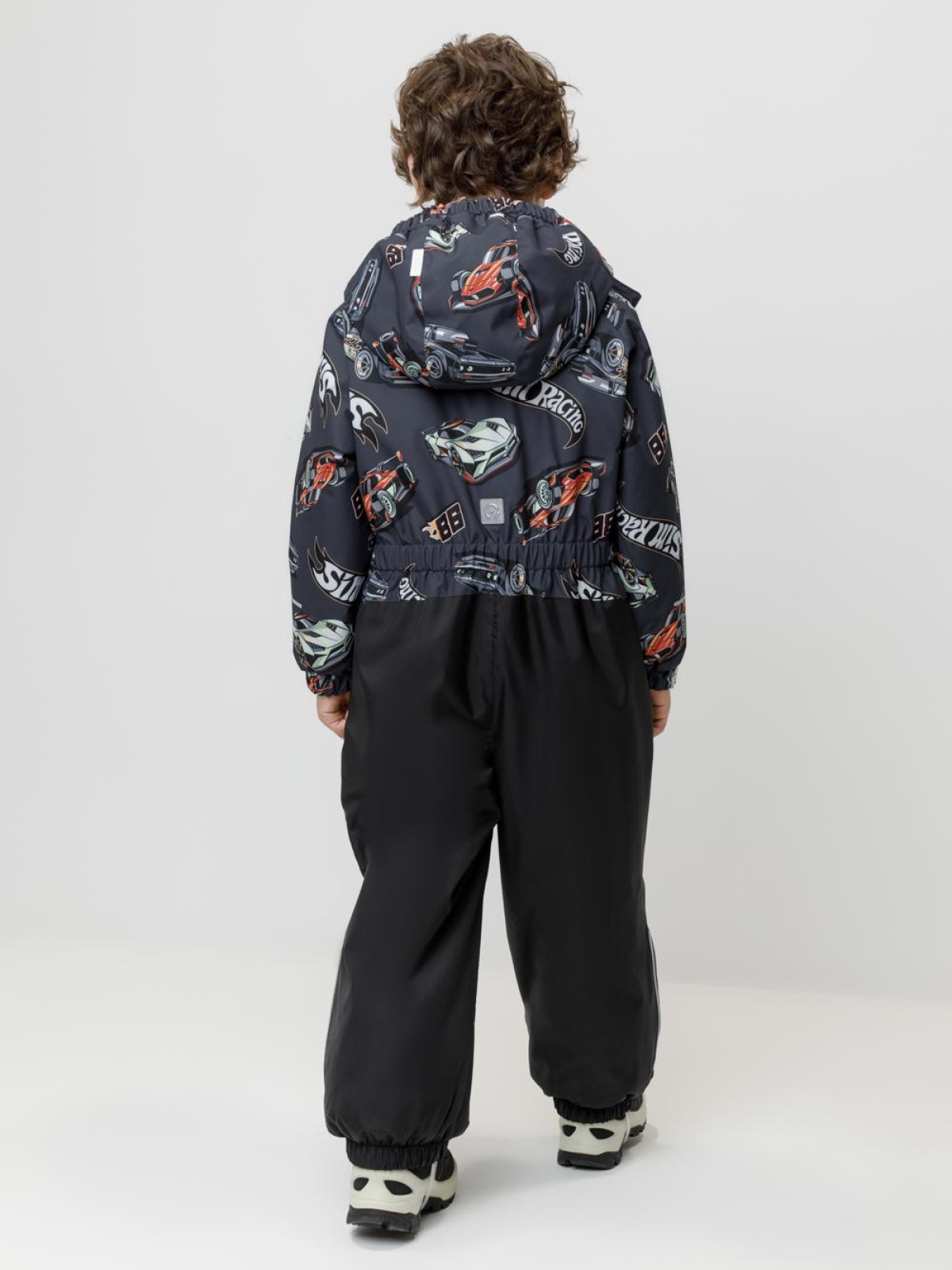 Демисезонный комбинезон для мальчика с утеплителем SEE, 120 г/м2. Выполнен из мембранной ткани с дополнительной тефлоновой обработкой. Данный вид обработки предохраняет изделие от загрязнения и лучше отводит влагу. Подклад из 100% полиэстера. Для удобного одевания комбинезон застёгивается на удлинённую молнию с защитой подбородка. Капюшон не снимается, по верхнему краю есть эластичная вставка. По низу рукавов и брючин, а также на спинке изделия предусмотрены эластичные резинки для лучшего прилегания. Для фиксации комбинезона используются съёмные силиконовые штрипки. Во всех изделиях верхнего ассортимента для безопасности ребёнка предусмотрены светоотражающие элементы.