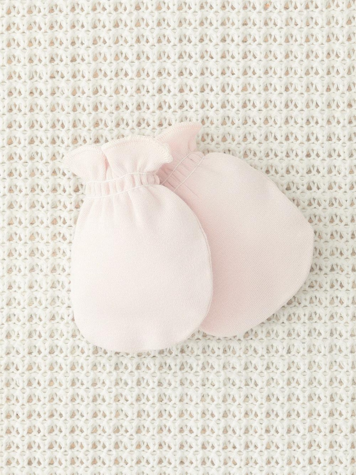 Варежки-антицарапки для новорождённых из мягкого эластичного трикотажа интерлок, произведённого из натурального хлопка. Изделие фиксируется на руке с помощью мягкой резинки. Все трикотажные полотна производятся в соответствии с нормами швейцарского сертификата ЭкоТекс.