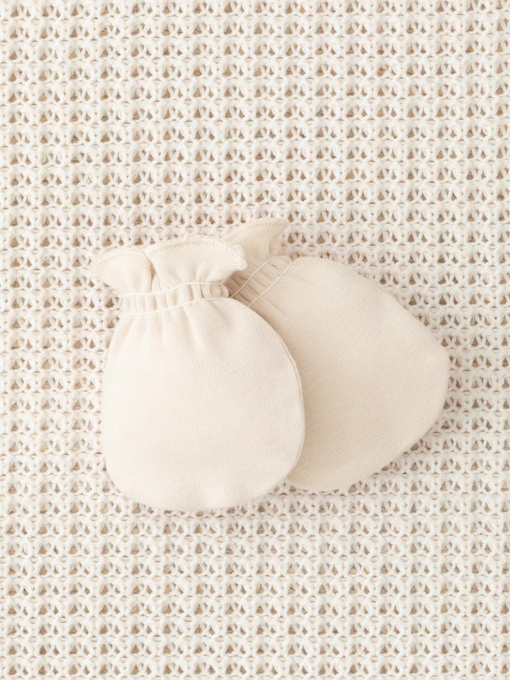 Варежки-антицарапки для новорождённых из мягкого эластичного трикотажа интерлок, произведённого из натурального хлопка. Изделие фиксируется на руке с помощью мягкой резинки. Все трикотажные полотна производятся в соответствии с нормами швейцарского сертификата ЭкоТекс.