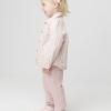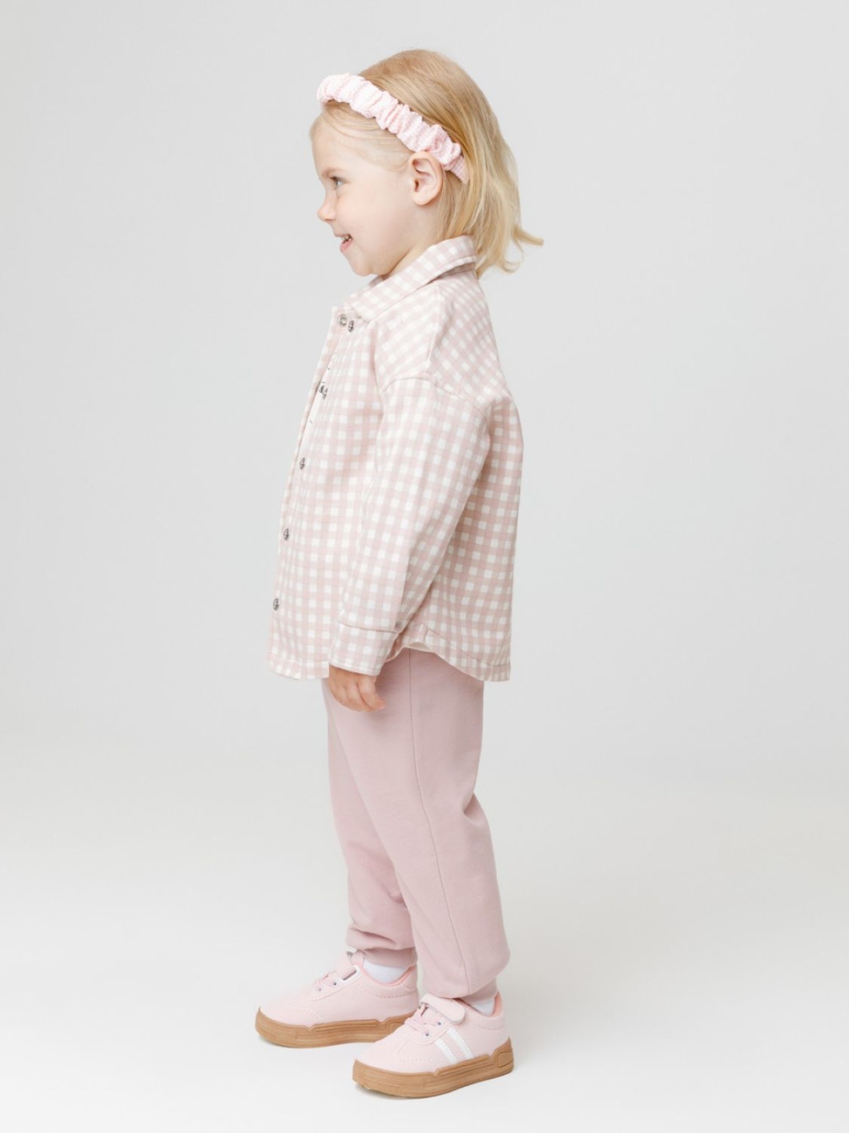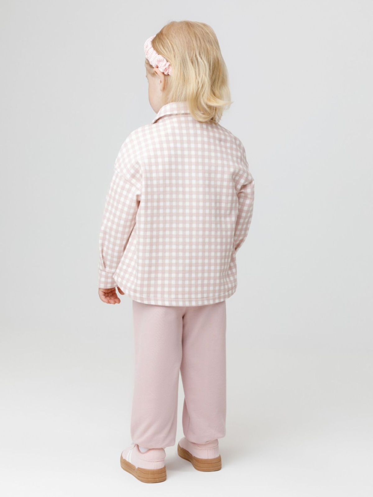 Брюки для девочки из мягкого петельчатого трикотажа. Эластичный пояс на резинке регулируется по ширине с помощью шнурка. Внизу эластичные манжеты. Изделие сохраняет цвет и форму после многократных стирок. Все трикотажные полотна производятся в соответствии с нормами швейцарского сертификата ЭкоТекс.