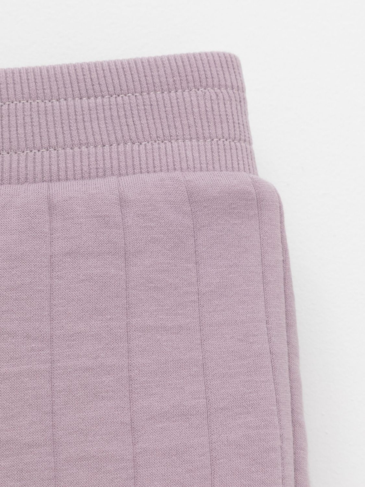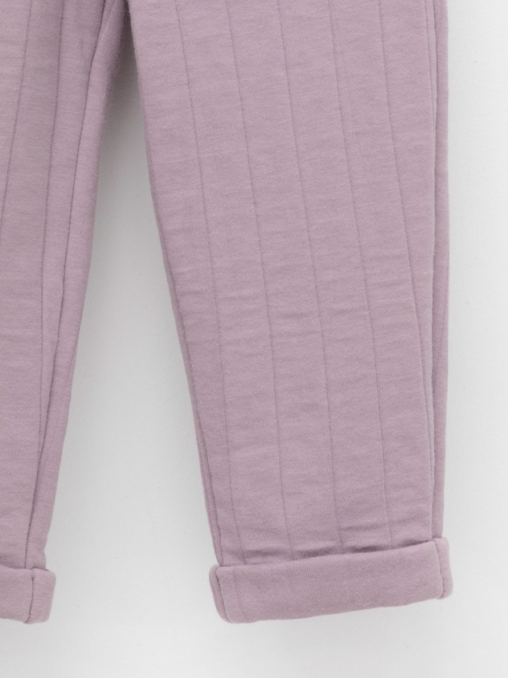 Тёплые брюки для девочки из мягкого капитония. Капитоний – это стёганое трикотажное полотно с утеплителем из полиэстеровой нити. Модель с эластичным поясом на резинке регулируется по ширине при помощи шнурка. Все трикотажные полотна производятся в соответствии с нормами швейцарского сертификата ЭкоТекс.
