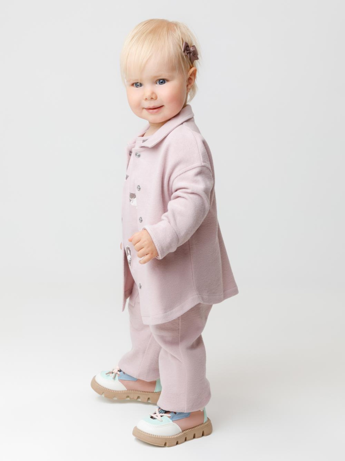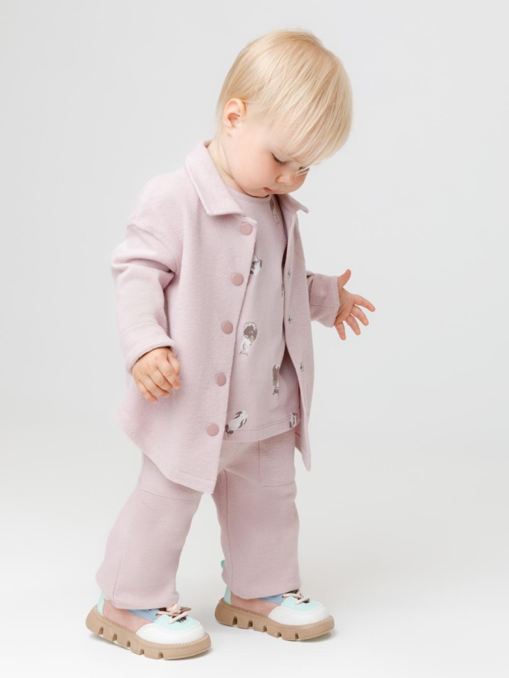 Прямые брюки для девочки из мягкого трикотажа селаник с peach эффектом. Peach эффект достигается с помощью технологии обработки полотна, при которой на его поверхности создаётся лёгкий ворс, напоминающий нежную текстуру кожи персика. Эластичный пояс на резинке регулируется по ширине с помощью шнурка. По бокам два удобных накладных кармана. Изделие сохраняет цвет и форму после многократных стирок. Все трикотажные полотна производятся в соответствии с нормами швейцарского сертификата ЭкоТекс.