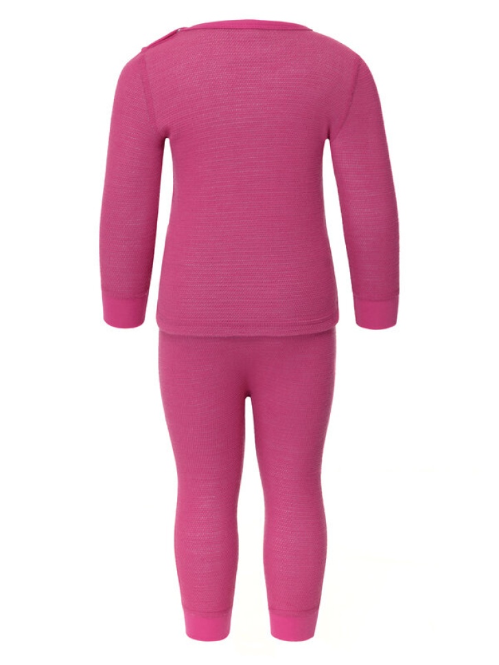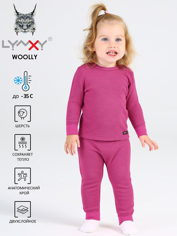 Термокомплект из лонгслива и леггинсов выполнен из двухслойного полушерстяного полотна, обеспечивающего повышенную теплосберегаемость. Внутренний слой состоит из хлопка, легко впитывает влагу, не раздражая кожу. Внешний слой из шерсти с акрилом сохраняет тепло и помогает регулировать температуру тела. Эластичное полотно обеспечивает комфорт и свободу движений, обладает гипоаллергенными свойствами. Застежка на кнопки по плечикам. Леггинсы имеют специальный крой для удобства ношения с подгузником. Подходит для ежедневного использования в качестве нательного белья в холодную погоду до -35 градусов при низкой и средней физической активности. Уход: ручная стирка при температуре до 40 градусов без предварительного замачивания.