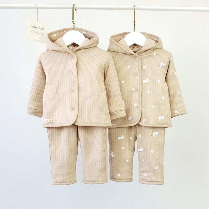 Двухсторонний комплект детский: куртка и брюки, цвет: бежевый. Двухсторонний тонкий утеплитель. Обратите внимание! Цена указана за 1 комплект. На фото представлен вид комплекта с двух сторон.