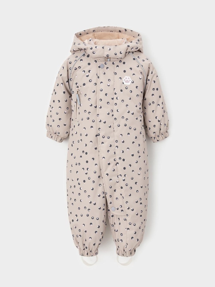 Демисезонный комбинезон ясельный с утеплителем SEE, 120 г/м2. Выполнен из мембранной ткани с дополнительной тефлоновой обработкой. Данный вид обработки предохраняет изделие от загрязнения и лучше отводит влагу. Подклад из 100% хлопка. Для удобного одевания комбинезон застёгивается на удлинённую молнию с защитой подбородка. Ветрозащитная планка фиксируется на липучках и кнопках. Утяжка на капюшоне с потайным стоппером. По низу рукавов и брючин, а также на спинке изделия предусмотрены эластичные резинки для лучшего прилегания. Для фиксации комбинезона используются съёмные силиконовые штрипки. В размерах 68-74 и 74-80 есть функциональные отвороты на рукавах и брючинах. Во всех изделиях верхнего ассортимента для безопасности ребёнка предусмотрены светоотражающие элементы.