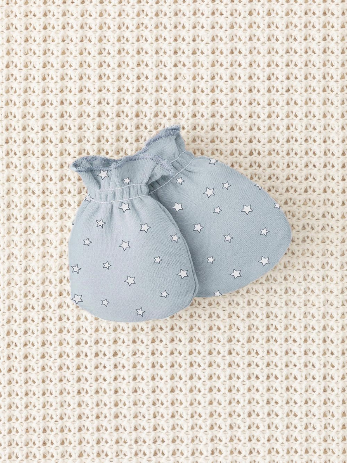 Варежки-антицарапки для новорождённых из мягкого эластичного трикотажа интерлок, произведённого из натурального хлопка. Изделие фиксируется на руке с помощью мягкой резинки. Все трикотажные полотна производятся в соответствии с нормами швейцарского сертификата ЭкоТекс.