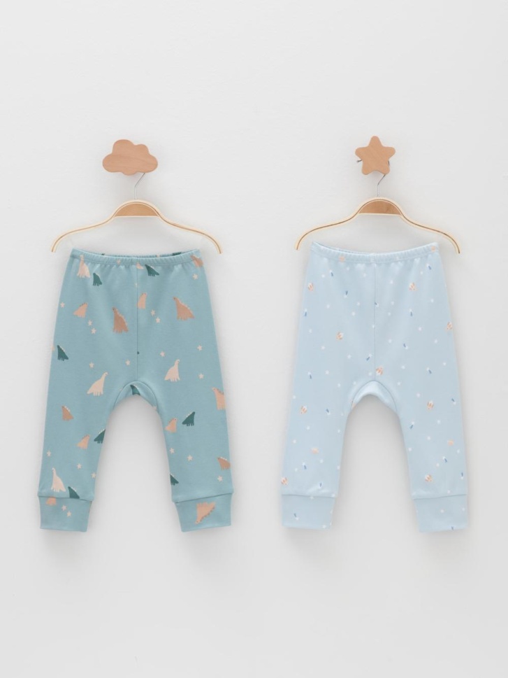 Брюки для новорождённых из мягкого эластичного трикотажа интерлок, произведённого из натурального хлопка. В упаковке 2 штуки. Пояс на резинке. Оригинальная набивка выполнена из стойких гипоаллергенных текстильных красителей. Все трикотажные полотна производятся в соответствии с нормами швейцарского сертификата ЭкоТекс.
