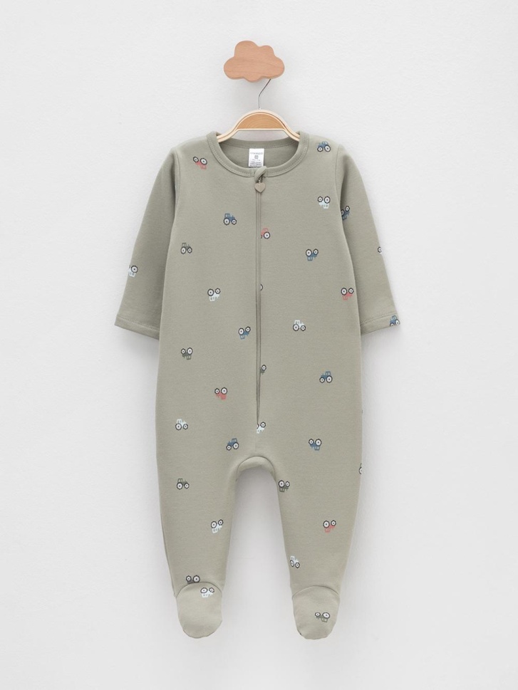 Комбинезон для новорождённых из тонкого футера с начёсом, произведённого из натурального хлопка. Застёгиваются спереди на молнию с мягкой защитой шеи и подбородка. В размере 56 на рукавах предусмотрены антицарапки, швы выполнены наружу. Оригинальная набивка выполнена из стойких гипоаллергенных текстильных красителей. Все трикотажные полотна производятся в соответствии с нормами швейцарского сертификата ЭкоТекс.