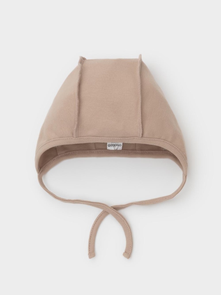 Шапочка на завязках для новорождённых. Изготовлена из мягкого эластичного трикотажа интерлок, произведённого из натурального хлопка. Все трикотажные полотна производятся в соответствии с нормами швейцарского сертификата ЭкоТекс.