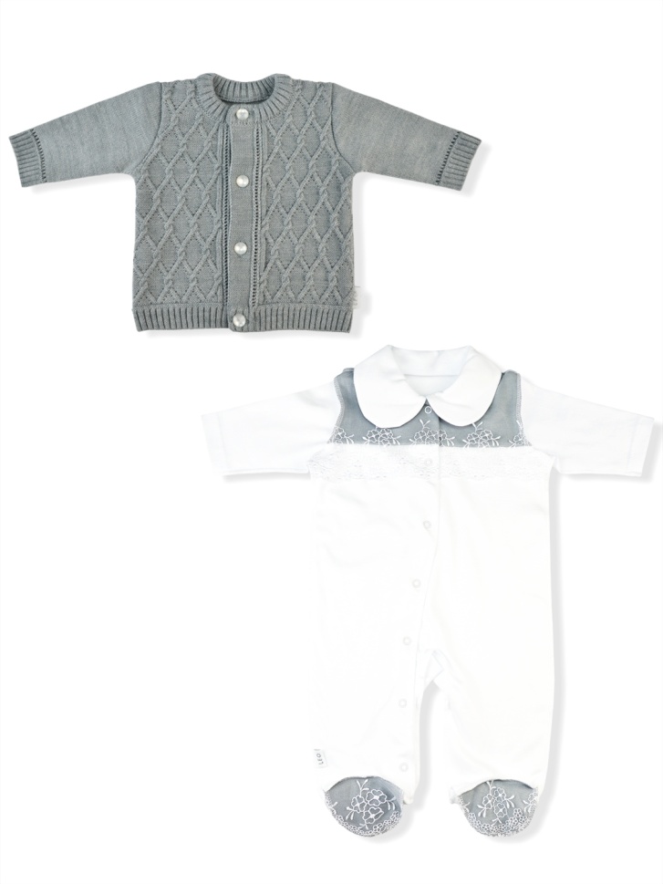 Очаровательный комплект "Ришелье" для самых любимых малышей! Комбинезончик с застежками по всей длине легко снимается и надевается. Вязаная кофточка с длинным рукавом прекрасно сохраняет тепло. Декор из изящного кружева добавляет комплекту очарования!