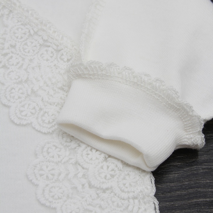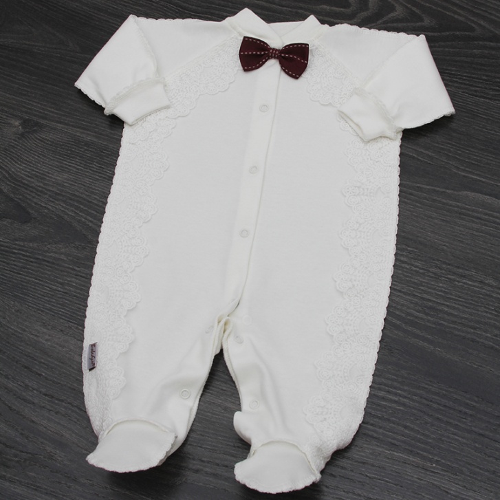 Однотонный комбинезон с длинным рукавом реглан, с печатью, с отделкой "крошет", с кружевом и бантиком - бабочкой. Выполнен из качественного российского трикотажа. Манжеты и горловина выполнены из мягкого эластичного материала. Модель прекрасно подойдет для ежедневного использования и праздничного выхода.