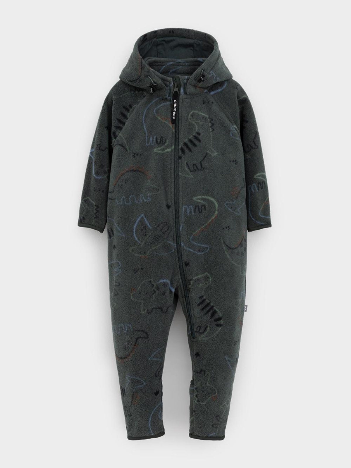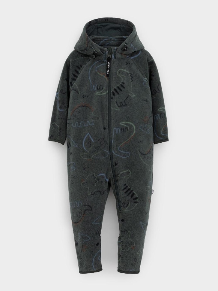 Флисовый комбинезон для мальчика со съёмным капюшоном. Капюшон регулируется по ширине с помощью эластичной утяжки со стопперами. Подклад выполнен из гладкого трикотажа супрем, произведённого из высококачественного натурального хлопка. Застёгивается на удлинённую молнию с мягкой защитой шеи и подбородка. В размерах 62, 68 и 74 на рукавах и ножках есть отвороты. Оригинальная набивка выполнена из стойких гипоаллергенных текстильных красителей. Комбинезон сохраняет цвет и форму после многократных стирок.