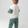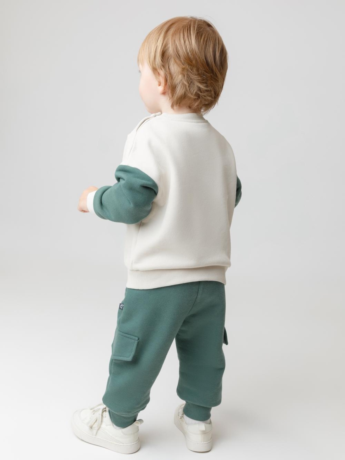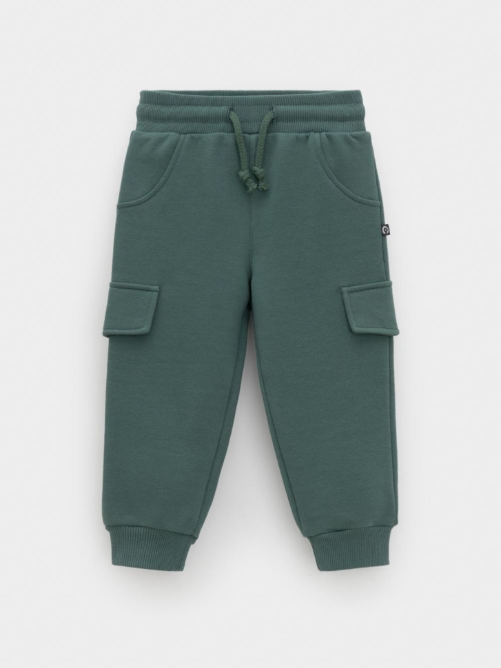 Брюки для мальчика из мягкого петельчатого футера трёхнитки. В составе 80% натурального хлопка и 20% полиэстера, при этом полиэстер ввязан внутрь по особой технологии и не соприкасается с кожей. Модель с эластичным поясом на резинке и утягивающим шнурком для регулировки по талии. По бокам два накладных клапана без карманов. Низ на манжетах. Изделие сохраняет цвет и форму после многократных стирок. Все трикотажные полотна производятся в соответствии с нормами швейцарского сертификата ЭкоТекс.