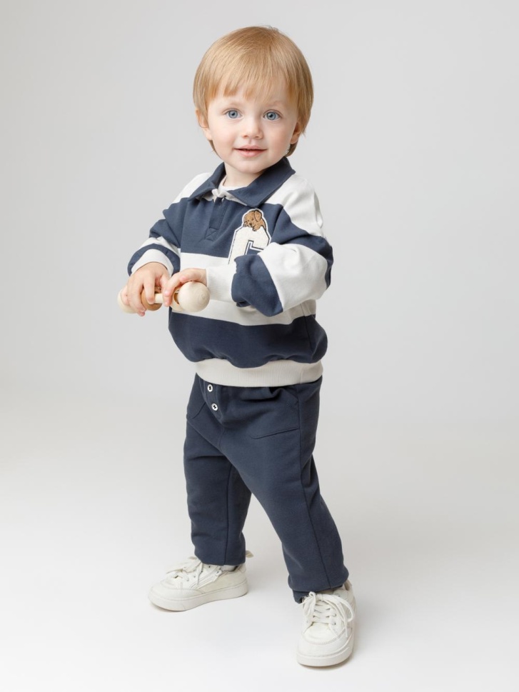 Брюки для мальчика из мягкого петельчатого футера. Модель с эластичным поясом на резинке и утягивающим шнурком для регулировки по талии. По бокам два накладных кармана. Низ с отворотами. Изделие сохраняет цвет и форму после многократных стирок. Все трикотажные полотна производятся в соответствии с нормами швейцарского сертификата ЭкоТекс.