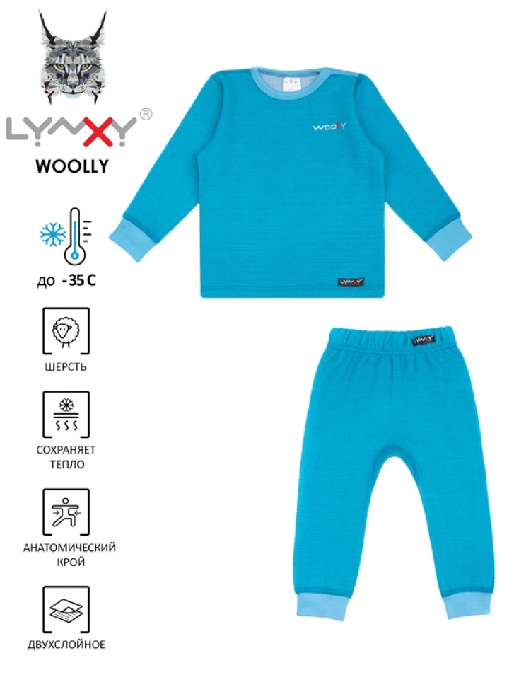 Термокомплект для малышей из лонгслива и леггинсов выполнен из двухслойного полушерстяного полотна, обеспечивающего повышенную теплосберегаемость. Застежка на кнопки по плечам. Леггинсы имеют специальный крой для удобства ношения с памперсом. Внутренний слой состоит из хлопка, легко впитывает влагу, не раздражая кожу. Внешний слой из шерсти с акрилом сохраняет тепло и помогает регулировать температуру тела. Эластичное полотно обеспечивает комфорт и свободу движений, обладает гипоаллергенными свойствами. Подходит для ежедневного использования в качестве нательного белья в холодную погоду до -20 градусов при низкой и средней физической активности. Уход: ручная стирка при температуре до 40 градусов без предварительного замачивания.