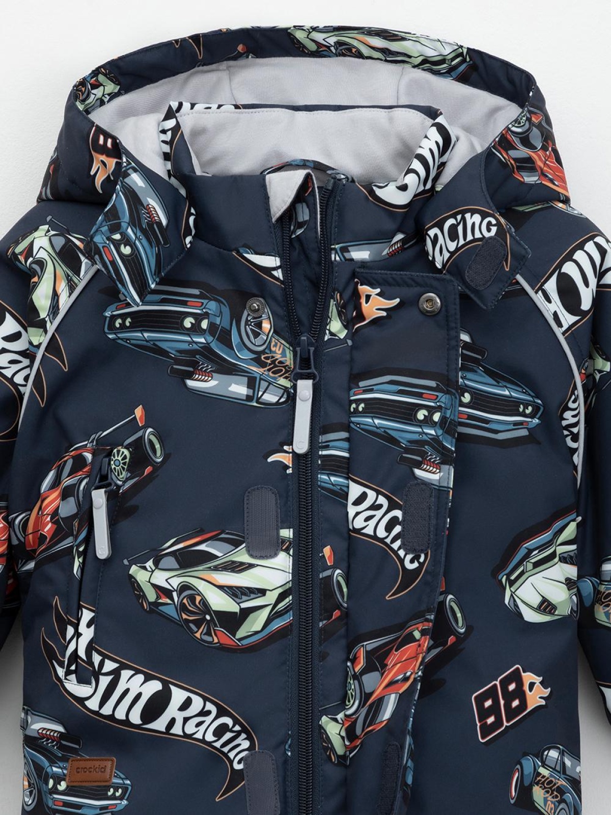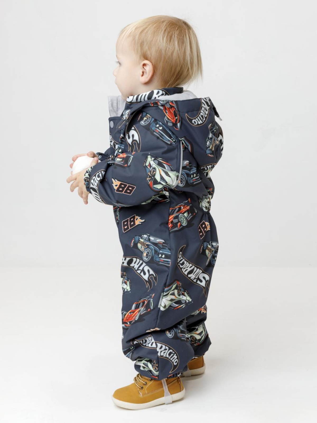 Демисезонный комбинезон ясельный с утеплителем SEE, 120 г/м2. Выполнен из мембранной ткани с дополнительной тефлоновой обработкой. Данный вид обработки предохраняет изделие от загрязнения и лучше отводит влагу. Подклад из 100% хлопка. Для удобного одевания комбинезон застёгивается на удлинённую молнию с защитой подбородка. Ветрозащитная планка фиксируется на липучках и кнопках. Утяжка на капюшоне с потайным стоппером. По низу рукавов и брючин, а также на спинке изделия предусмотрены эластичные резинки для лучшего прилегания. Для фиксации комбинезона используются съёмные силиконовые штрипки. В размере 74-80 есть функциональные отвороты на рукавах и брючинах. Во всех изделиях верхнего ассортимента для безопасности ребёнка предусмотрены светоотражающие элементы.