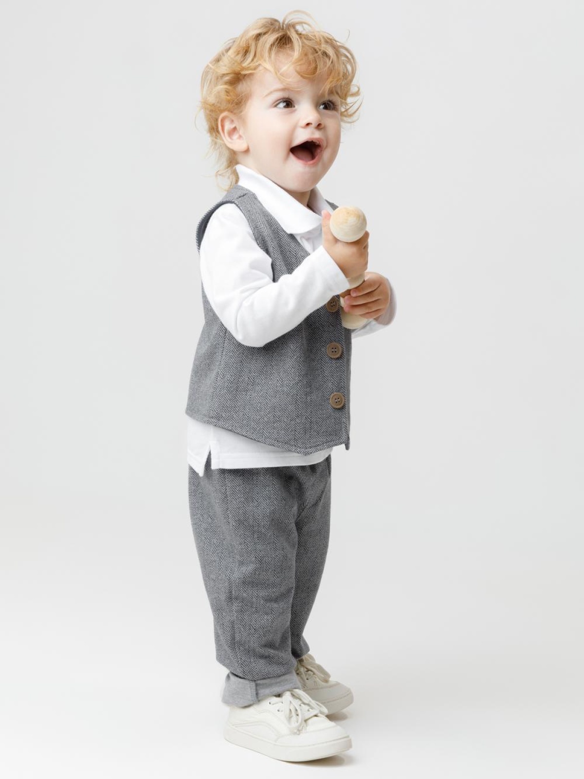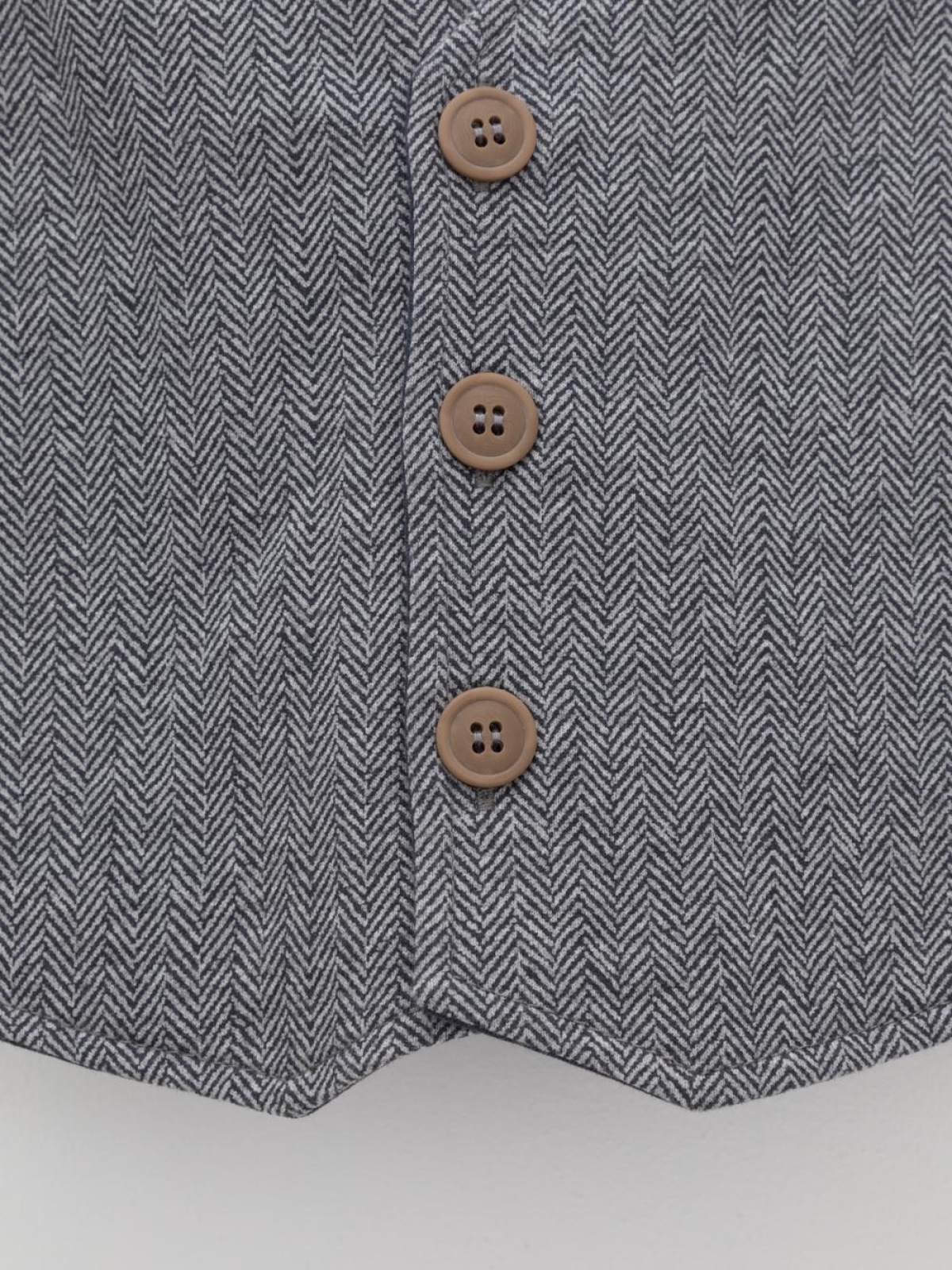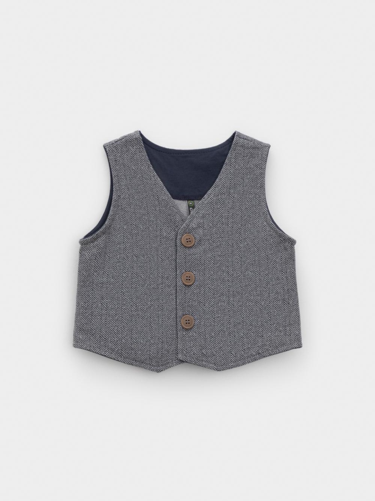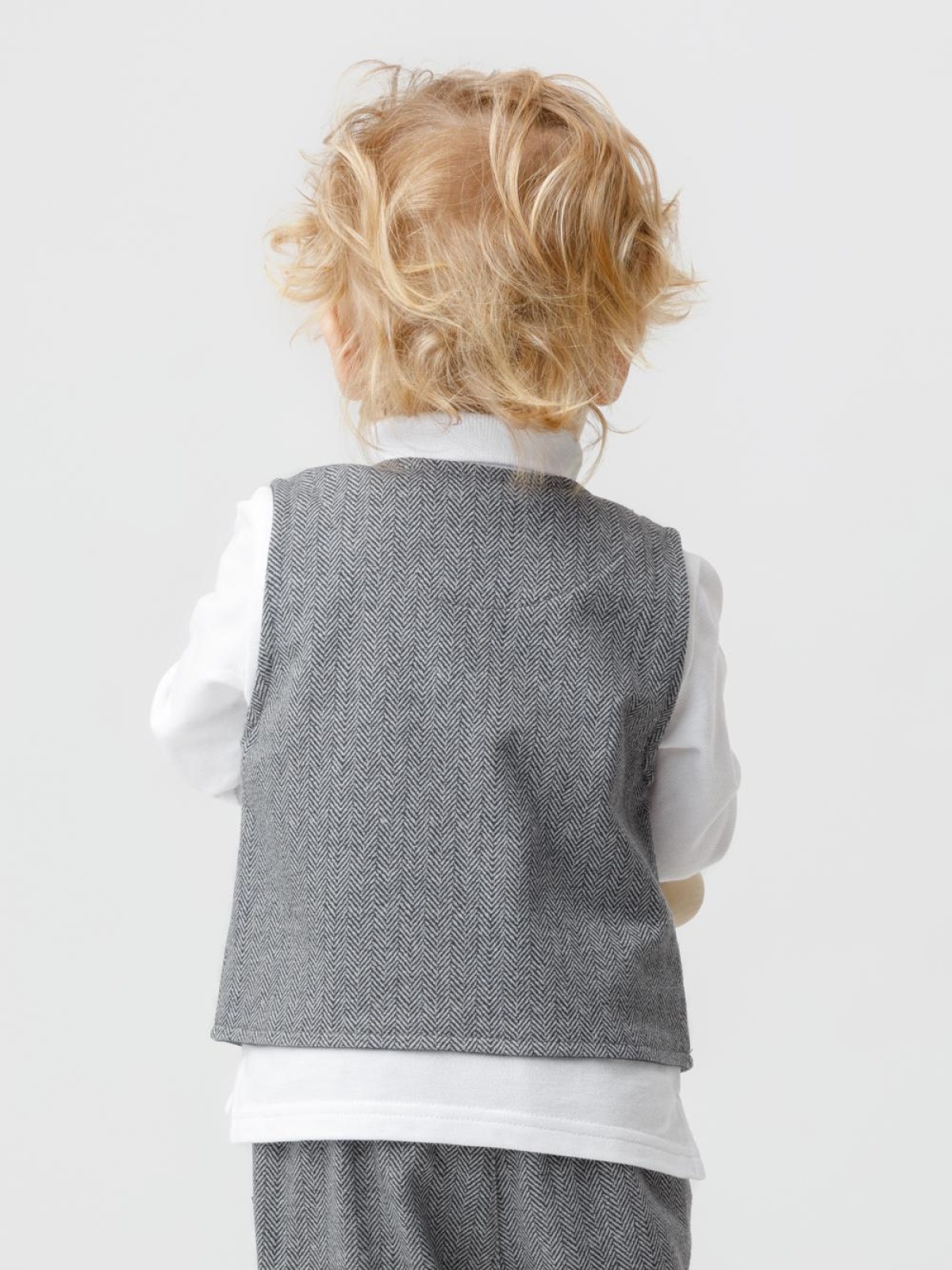 Жилет на пуговицах для мальчика. Изготовлен из высококачественного футера петли. Все трикотажные полотна производятся в соответствии с нормами швейцарского сертификата ЭкоТекс.