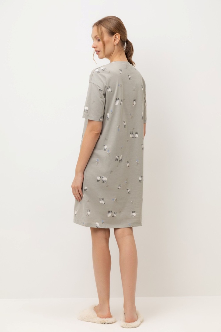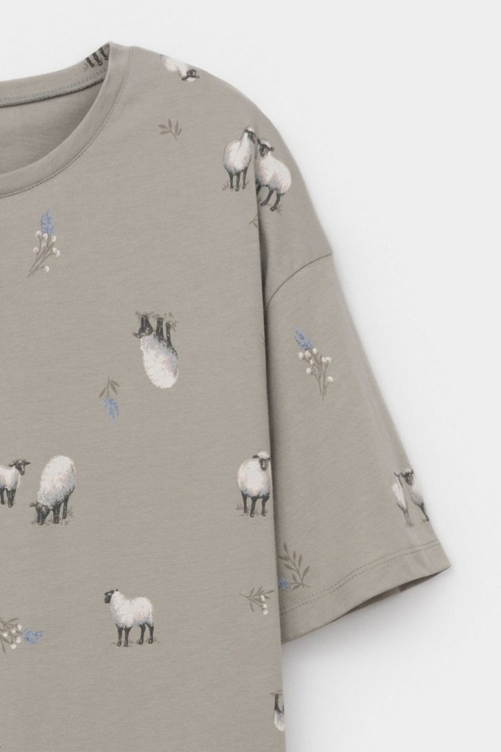 Е 10059/пыльно-оливковый,овечки на лугу сорочка ночная женская
