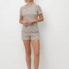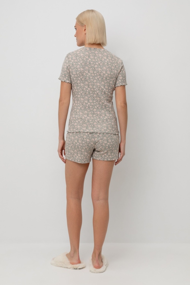 Е 20100/пыльно-оливковый,полевые цветы пижама женская (фуфайка, шорты) р 88/164-170 (S)