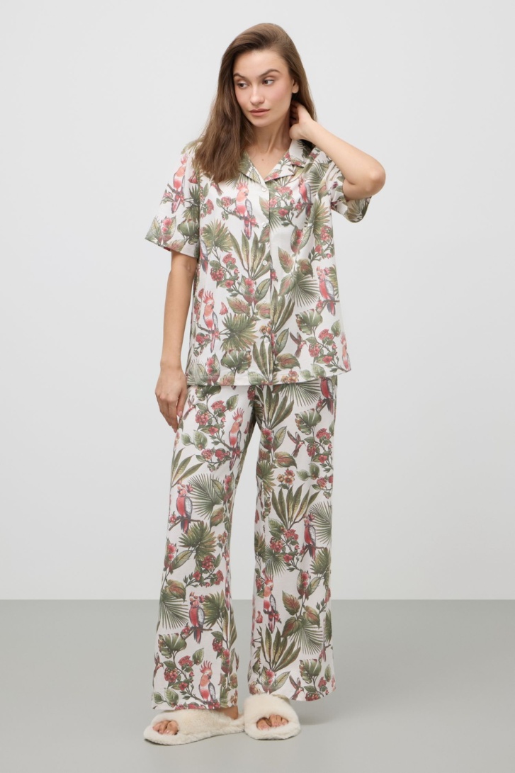 Е 20110/кремовый , пижама женская (рубашка ночная, брюки)