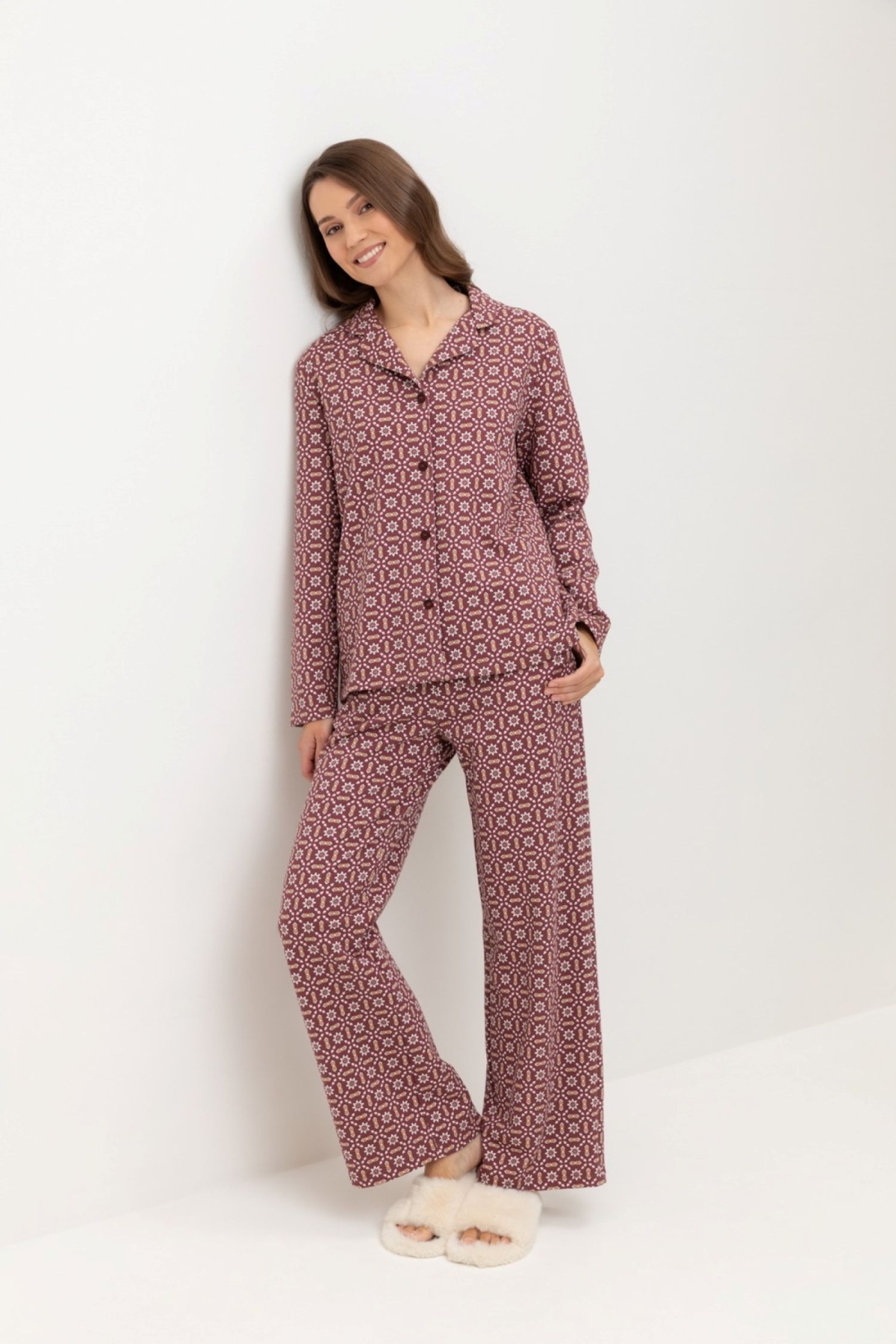 Подарите себе ощущение домашнего уюта с комплектом из 100% петельчатого хлопка. Свободный крой брюк и рубашка идеальной посадки созданы для придания максимального комфорта и практичности.