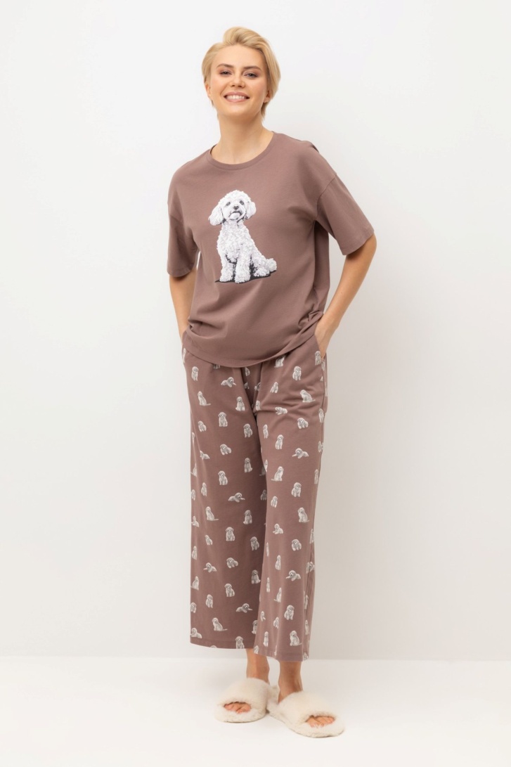 Комплект из высококачественного гребенного хлопка. Мягкий на ощупь принт на футболке выполнен на основе водных красок, что обеспечивает устойчивость к многократным стиркам. Комплект дополняют укороченные брюки с удобным поясом на резинке и практичными карманами.Перед стиркой обязательно ознакомьтесь с рекомендациями на ярлыке