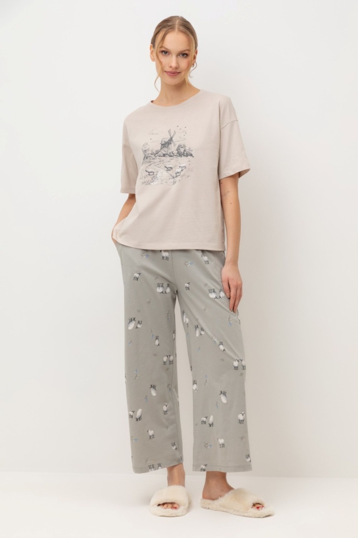Комплект из высококачественного гребенного хлопка. Брюки с удобным поясом на резинке и практичными карманами добавляют практичности и удобства.Перед стиркой обязательно ознакомьтесь с рекомендациями на ярлыке