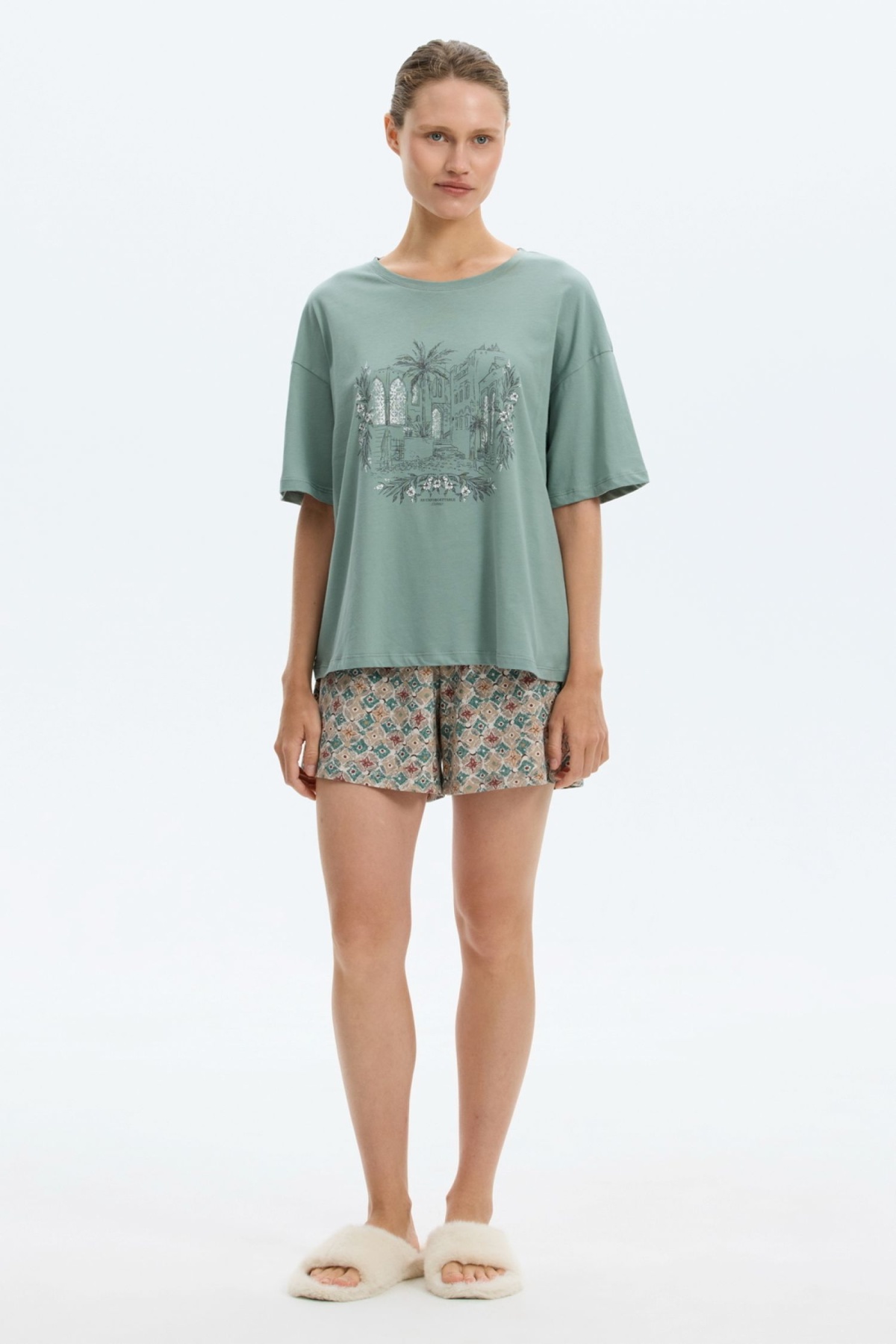 Е 20195/хаки , пижама женская (футболка, шорты)