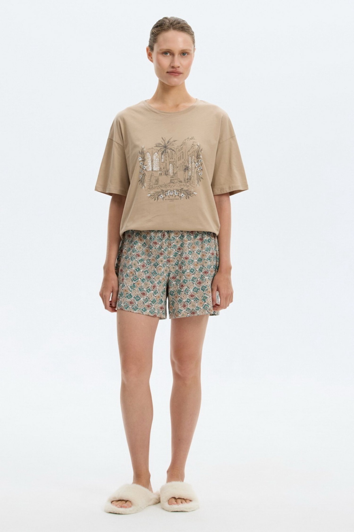 Е 20195/темно-бежевый , пижама женская (футболка, шорты)