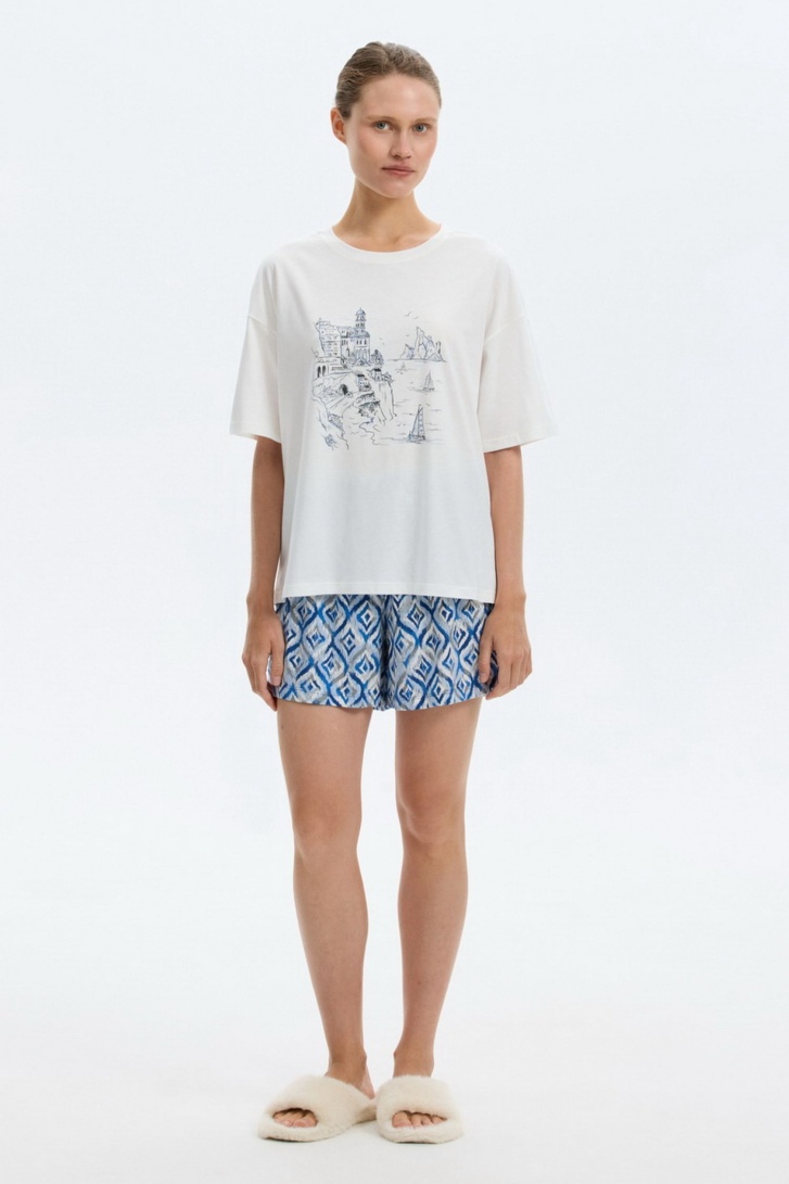 Е 20235/молочный , пижама женская (футболка, шорты)
